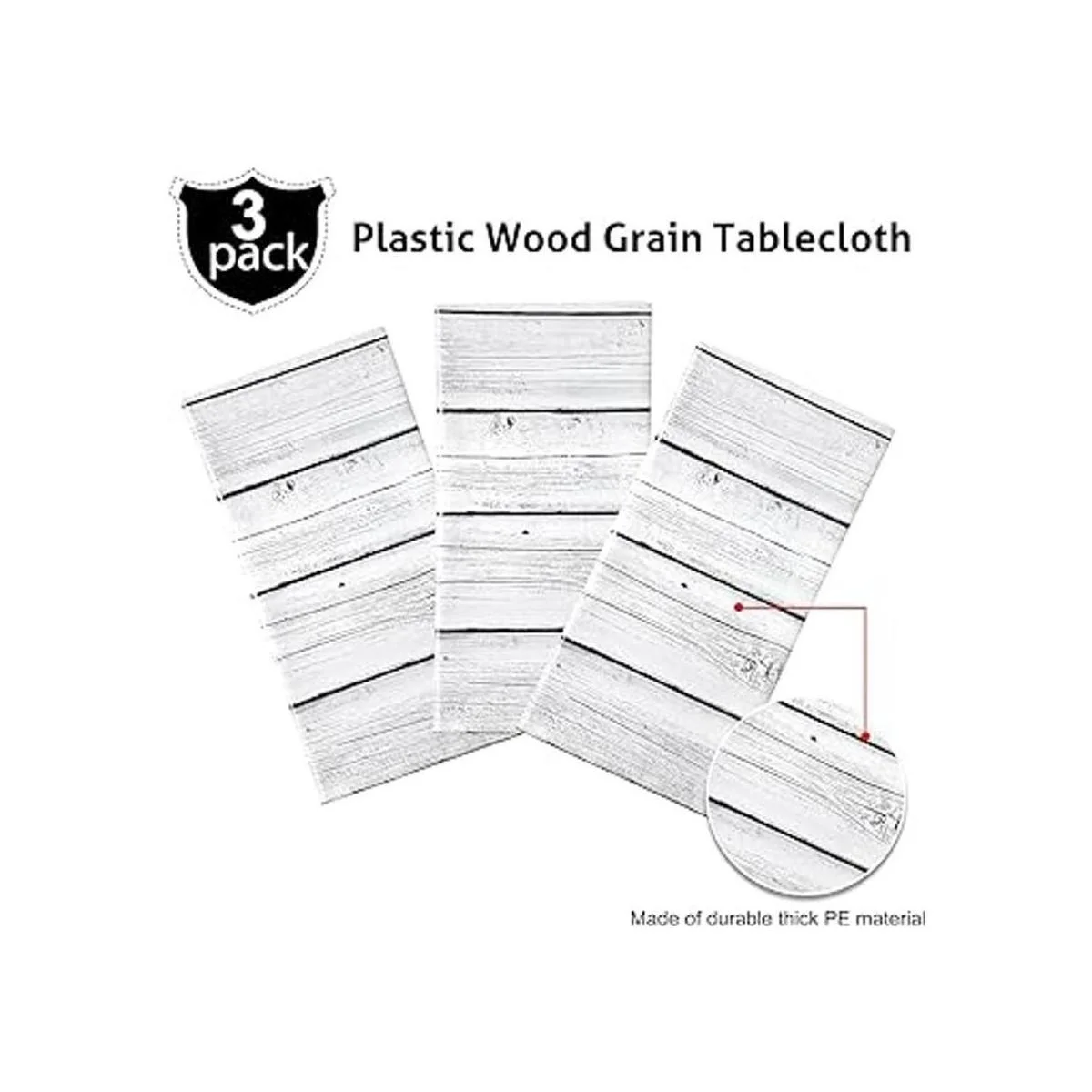 Mantel de madera de plástico de grano de madera blanca, 3 piezas, mantel rectangular de madera de grano de madera para decoración de mesa de picnic occidental, 54 x 108 pulgadas