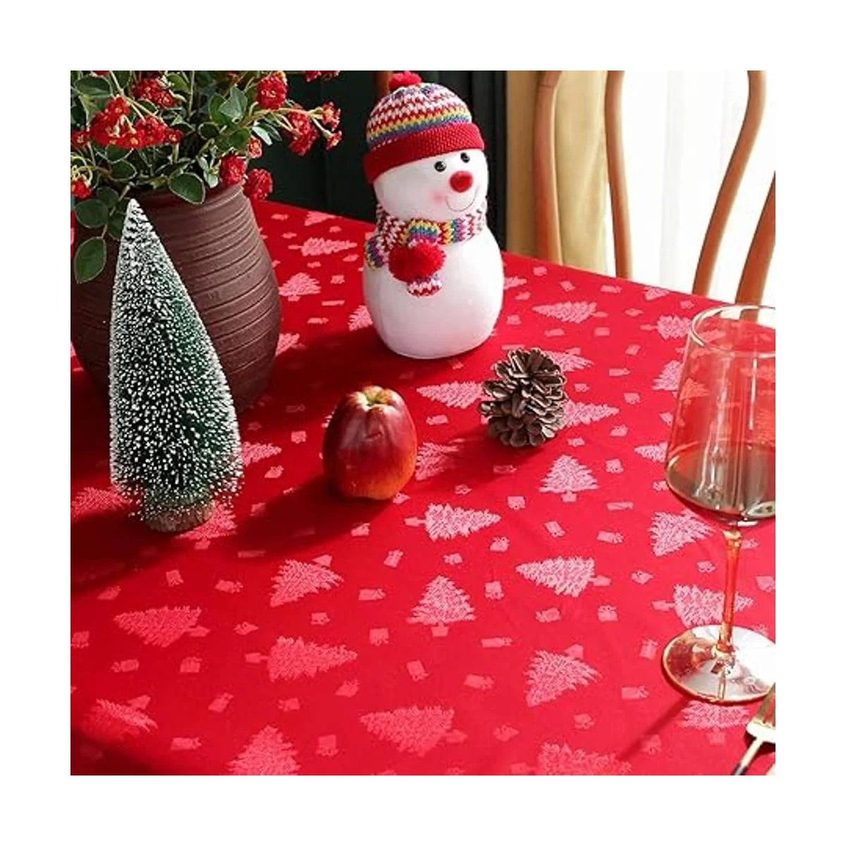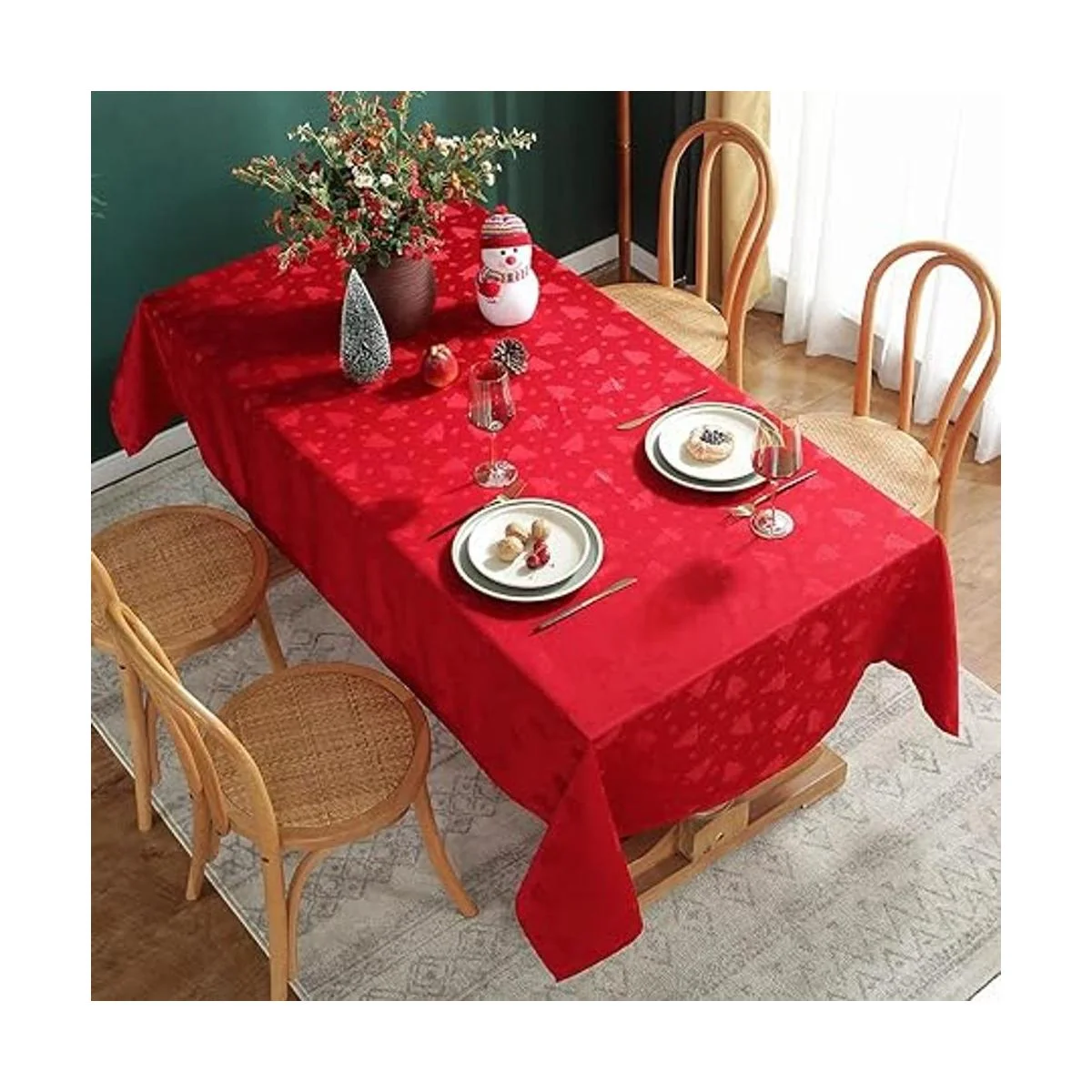 Mantel de Navidad rectangular, mantel jacquard a prueba de derrames y resistente a las arrugas, con patrones de árbol de Navidad para comedor y decoración navideña rojo, rectángulooblongo, 60 x 102 pulgadas 810 asientos