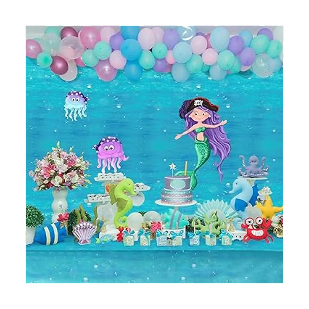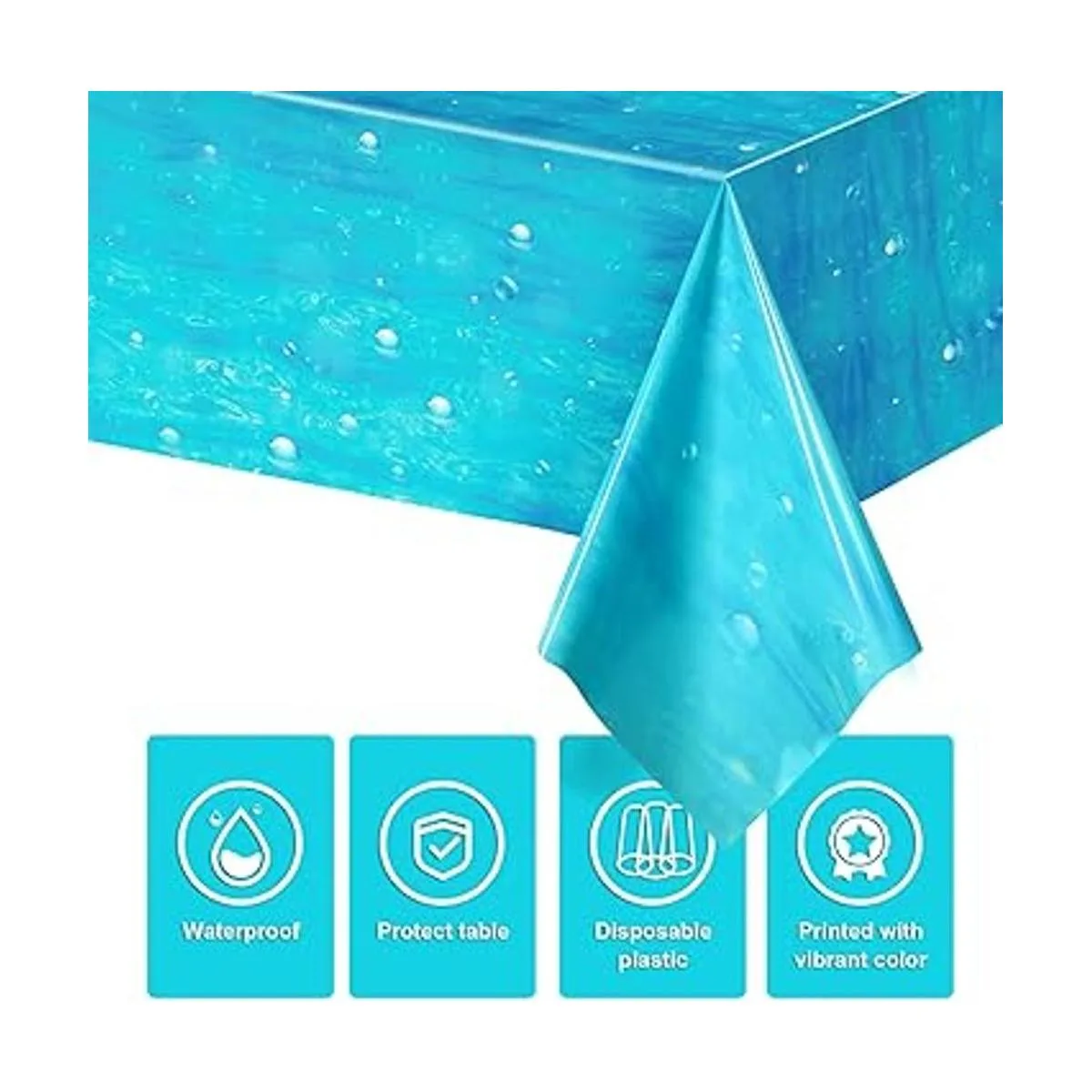 Mantel de plástico con estampado de agua de burbujas subacuáticas, 3 piezas, para océano bajo el mar, playa, piscina, sirena, fiesta de cumpleaños, baby shower, suministros de 54 x 108 pulgadas
