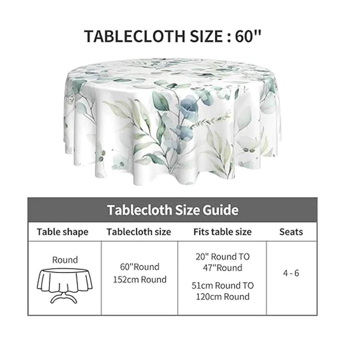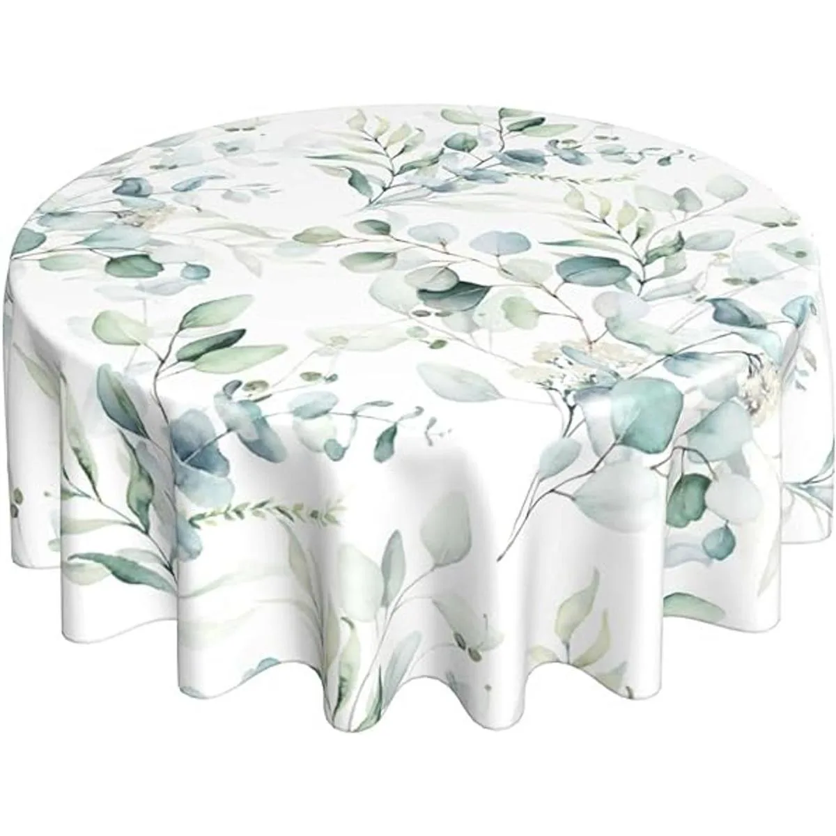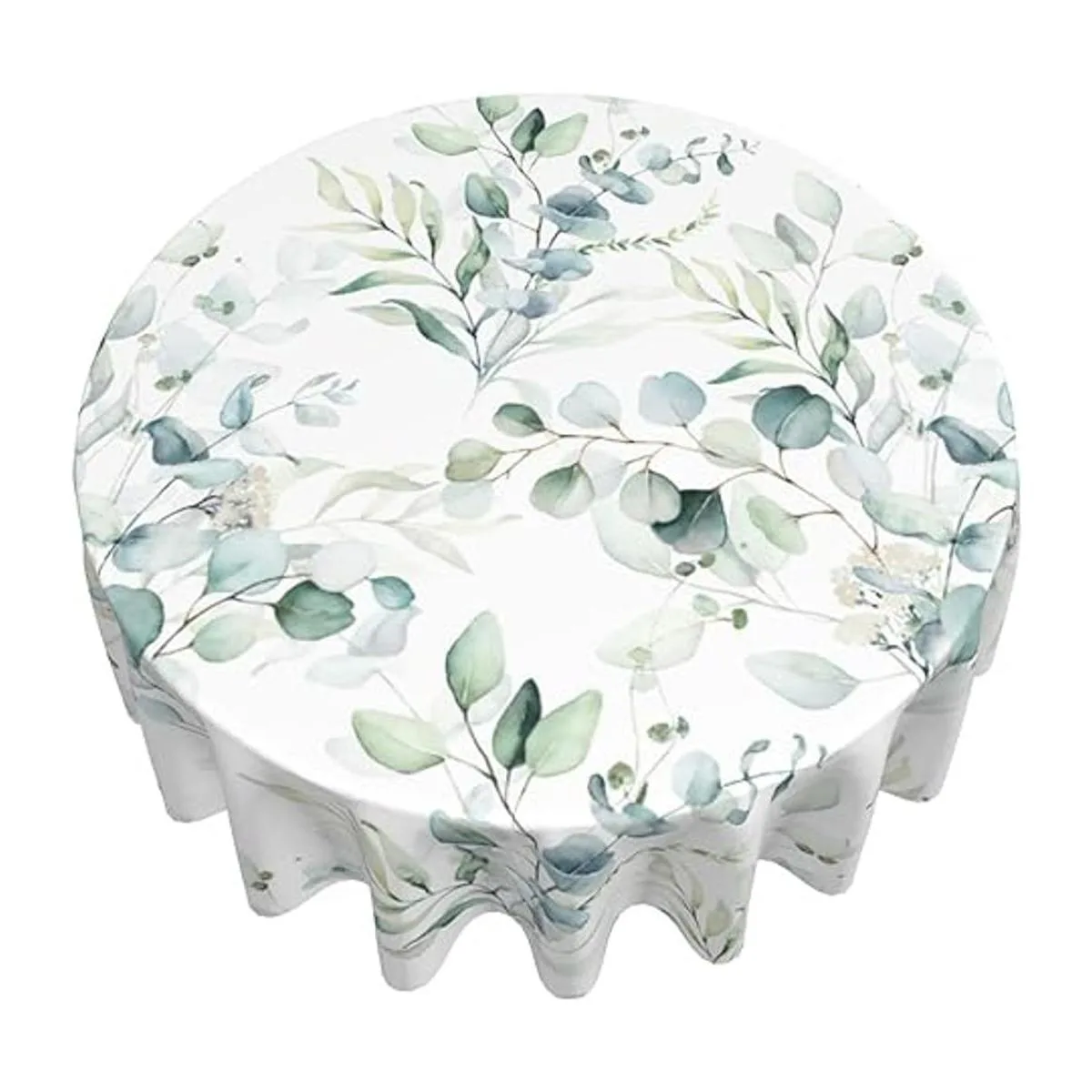 Mantel redondo de hojas de primavera verde salvia floral de 60 pulgadas, mantel de acuarela rútica impermeable, tela de granja, hojas verdes y grises, manteles decorativos para fiestas en casa de vacaciones