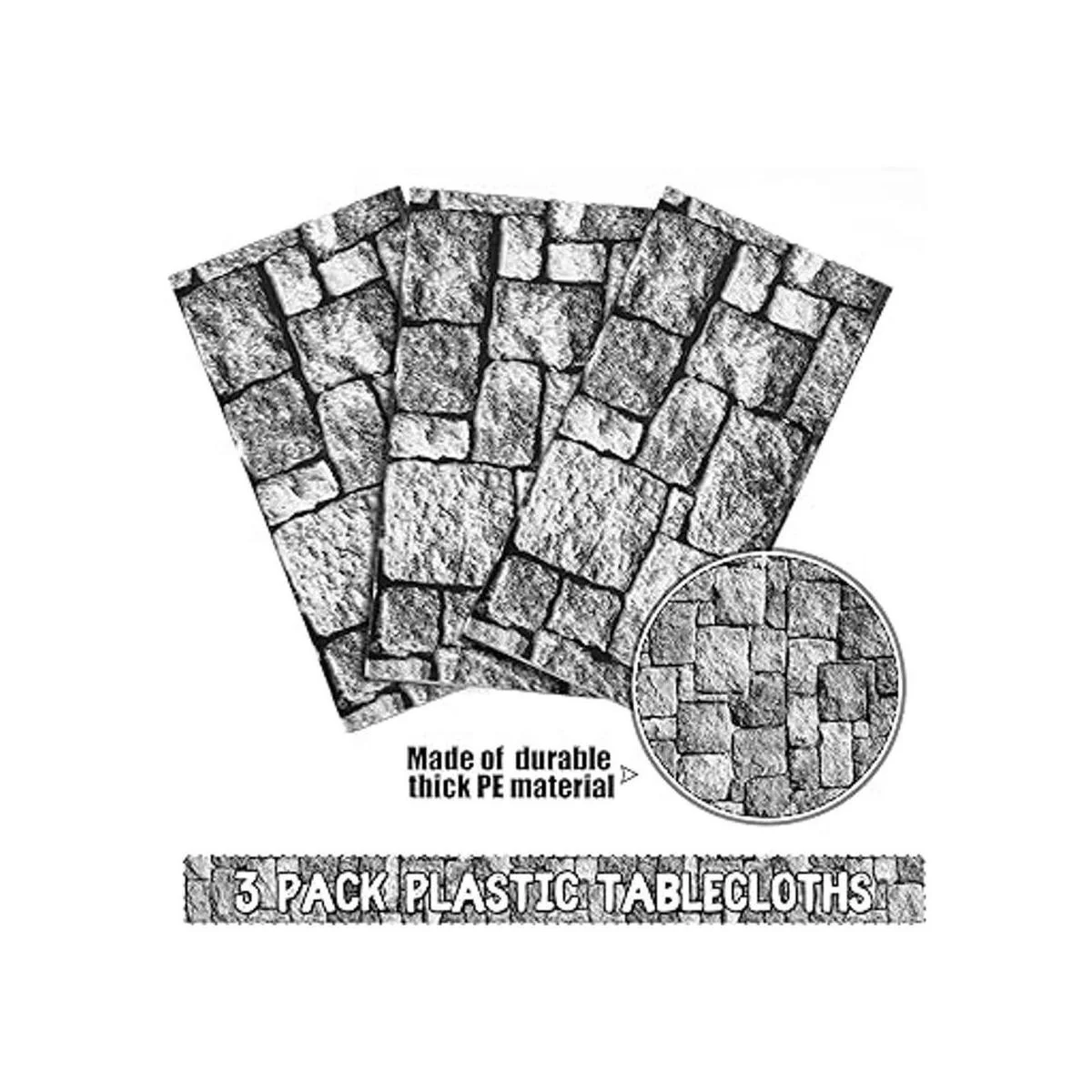 Manteles de pared de piedra, fundas de mesa de Halloween, decoraciones de pared de ladrillo, de plástico desechable con temática de castillo, mantel de piedra de ladrillo para suministros de fiesta de cumpleaños, 108 x 54 pulgadas paquete de 3
