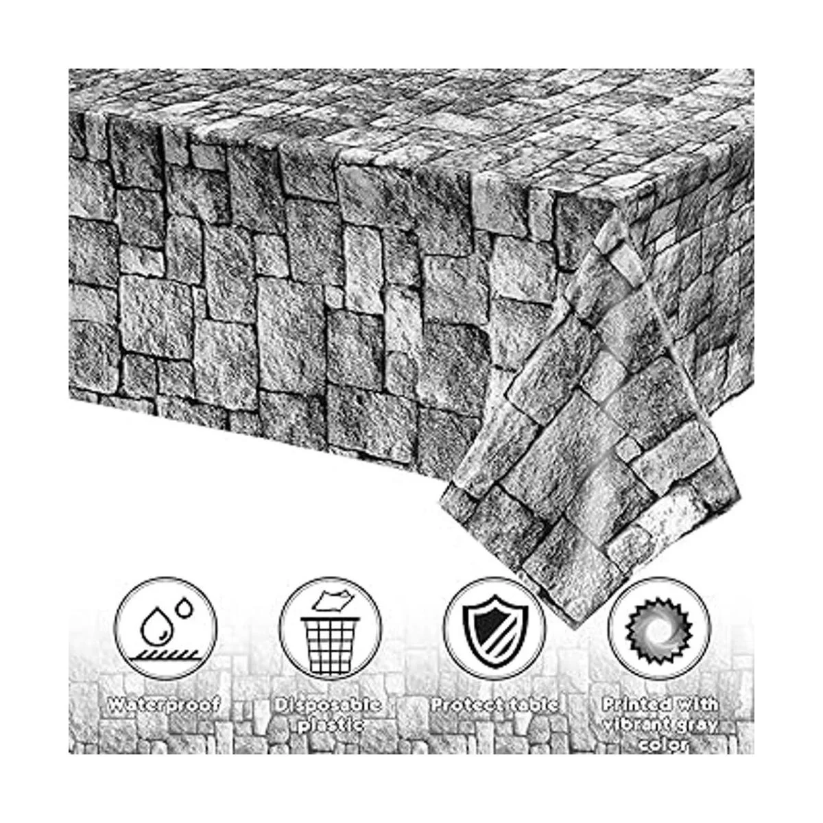 Material fiable: el telón de fondo de pared de piedra está hecho de plástico de polietileno de calidad; son inodoros, seguros para tus hijos o invitados que asisten a fiestas; además, es impermeable, evitando que el mantel se derrame bebidas