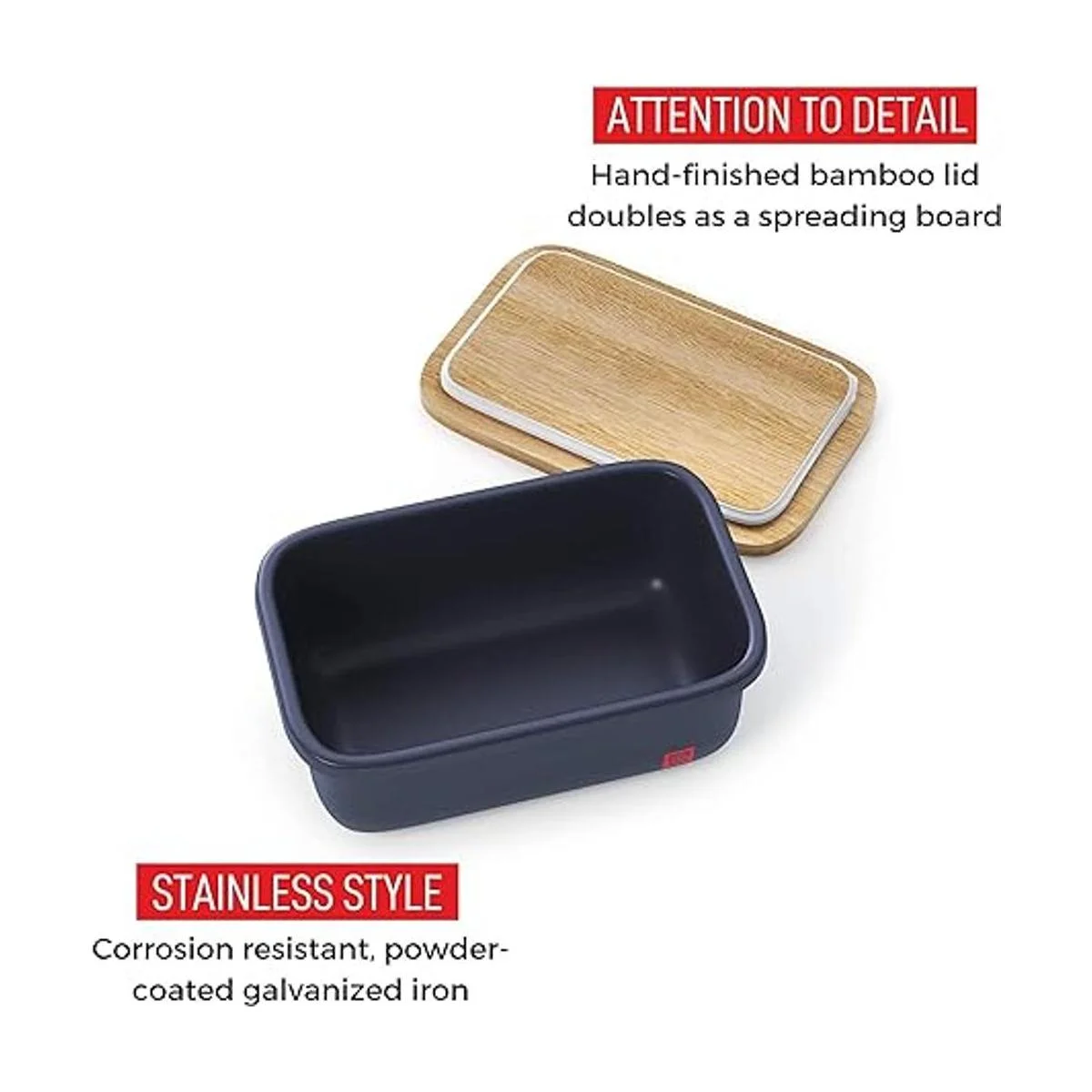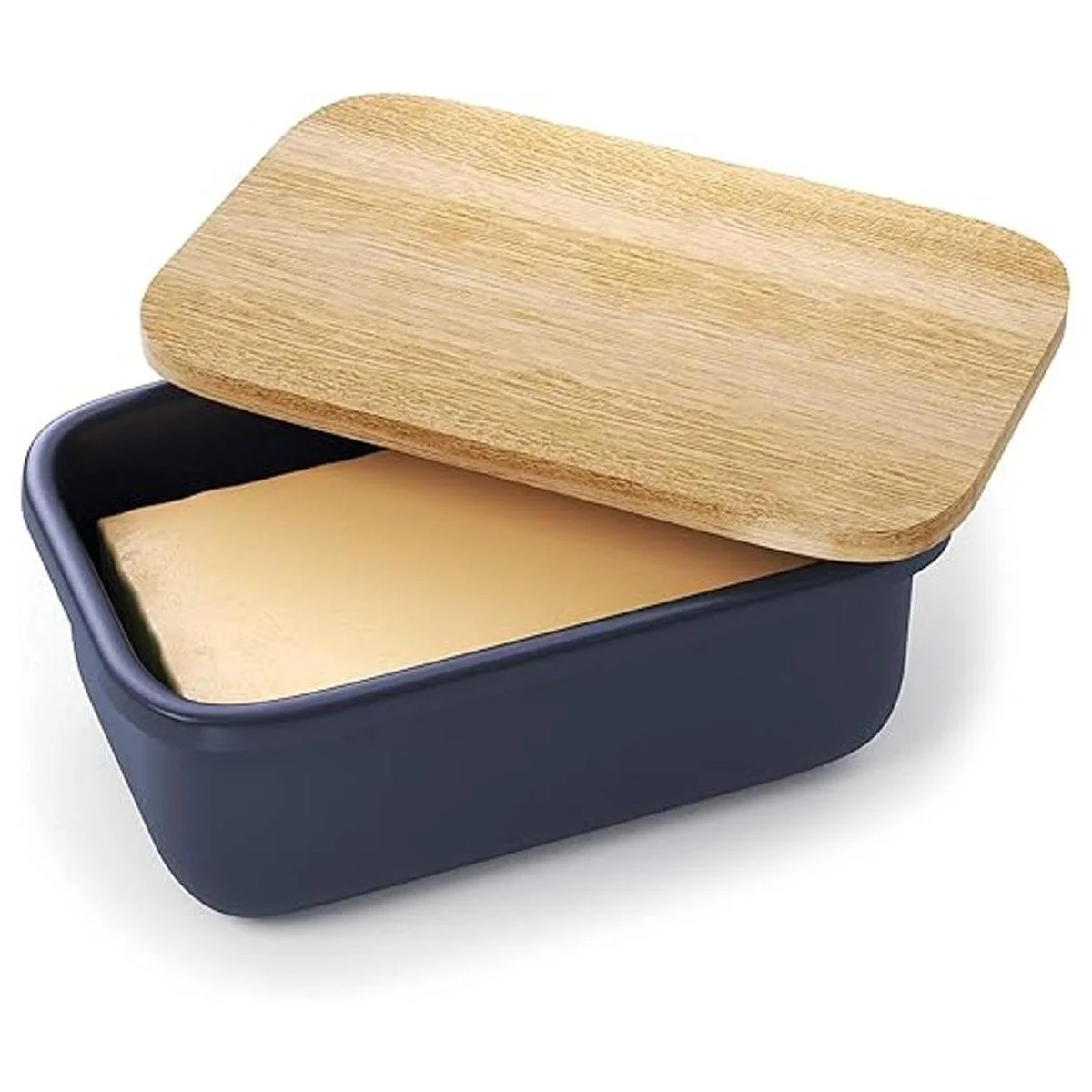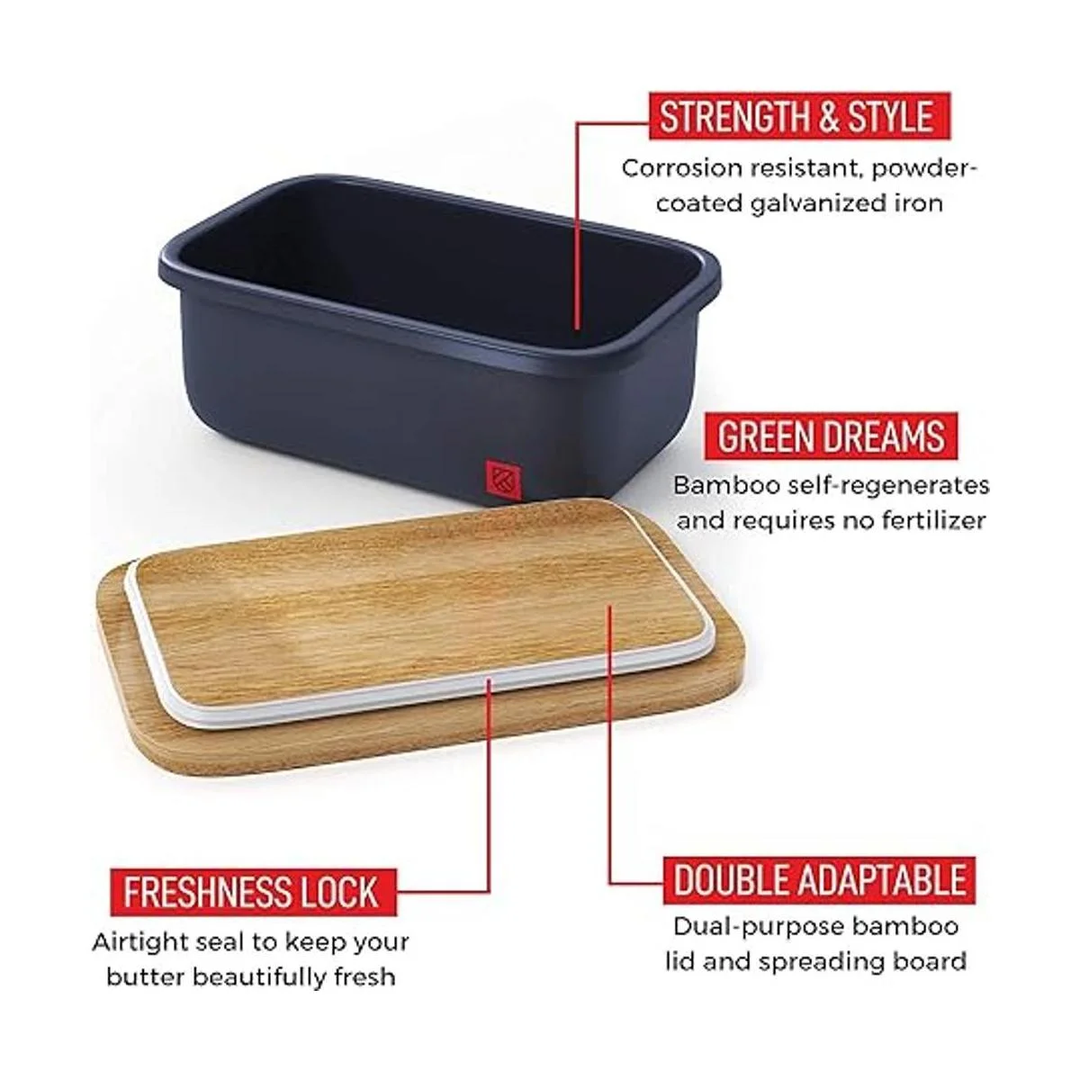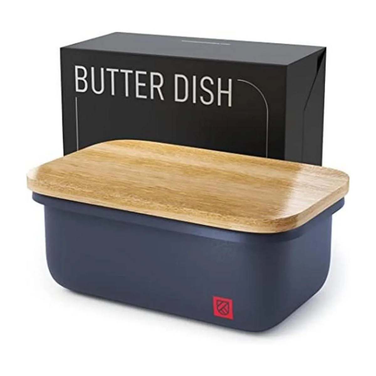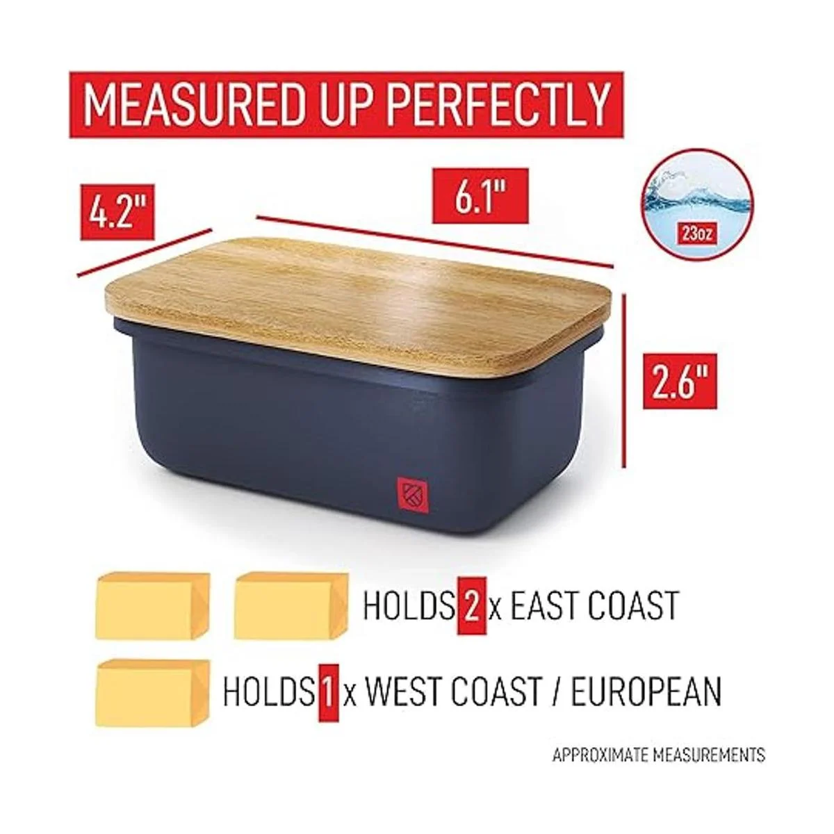 Mantequilla con tapa para encimera, contenedor para barra de mantequilla con sello de frescura, tabla de cortar con tapa de bambú, manteca Kensington London Butter Crock para encimera, color gris, 23 onzas