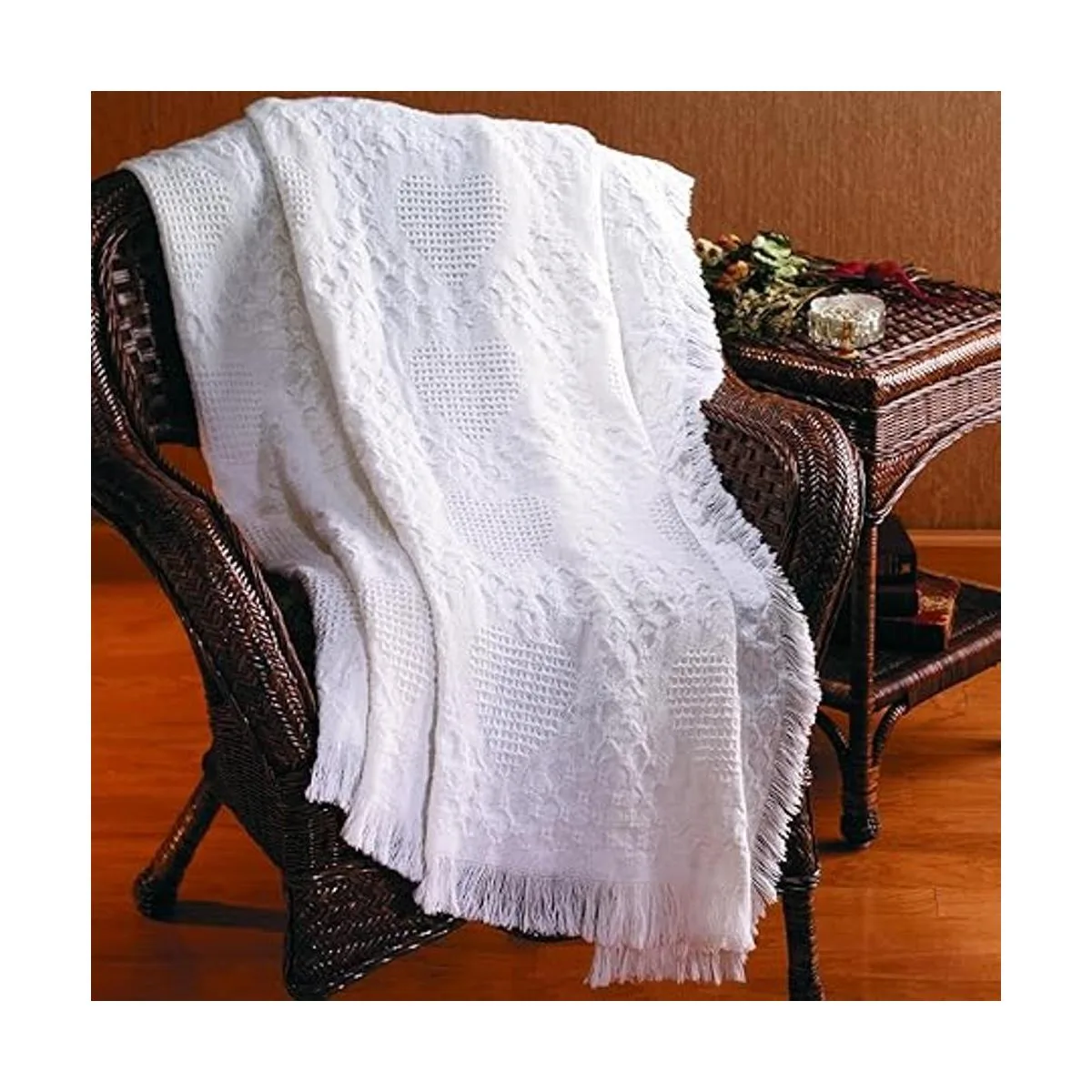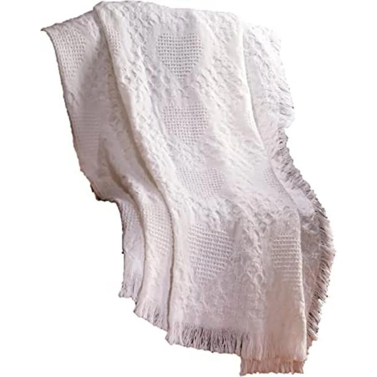 Manual 46 x 60Inch Basketweave Corazón 2 capas Manta de algodón, color blanco