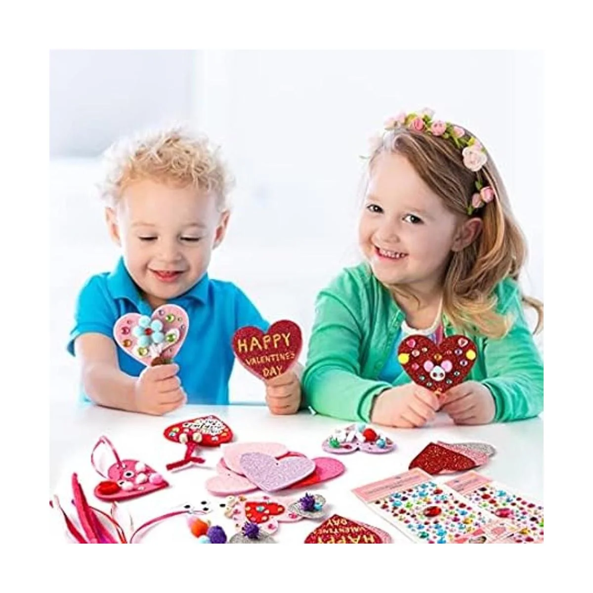 Manualidades para el día de San Valentín para niños 361 piezas de bricolaje de corazón de San Valentín para regalo escolar, 108 corazones, 50 ojos de Google, 60 pompones, 36 cuentas de madera, suministros de manualidades para decoración de fiesta de San Valentín