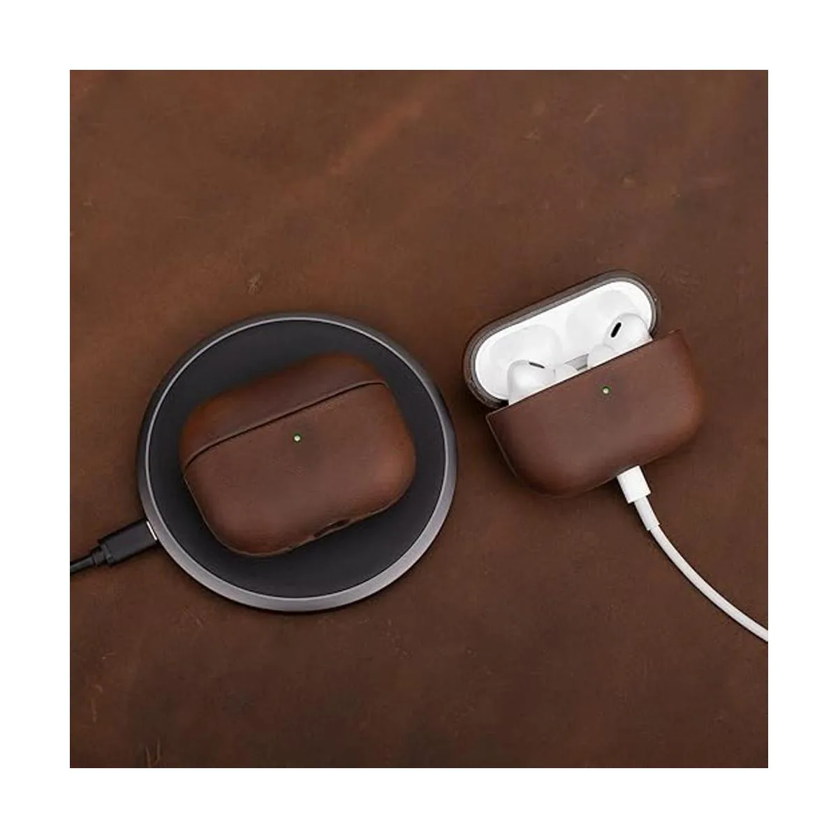 100 cuero de caballo loco de cera de aceite vintage de alta calidad Cuero auténtico curtido vegetal con una textura y estilo bellamente lustrosos con el tiempo, estilo Indiana Jones. La funda de piel MAOGOAM AirPods Pro de 2 generación está diseñada para dar a tus AirPods Pro 2 un aspecto clásico retro pero atrevido.