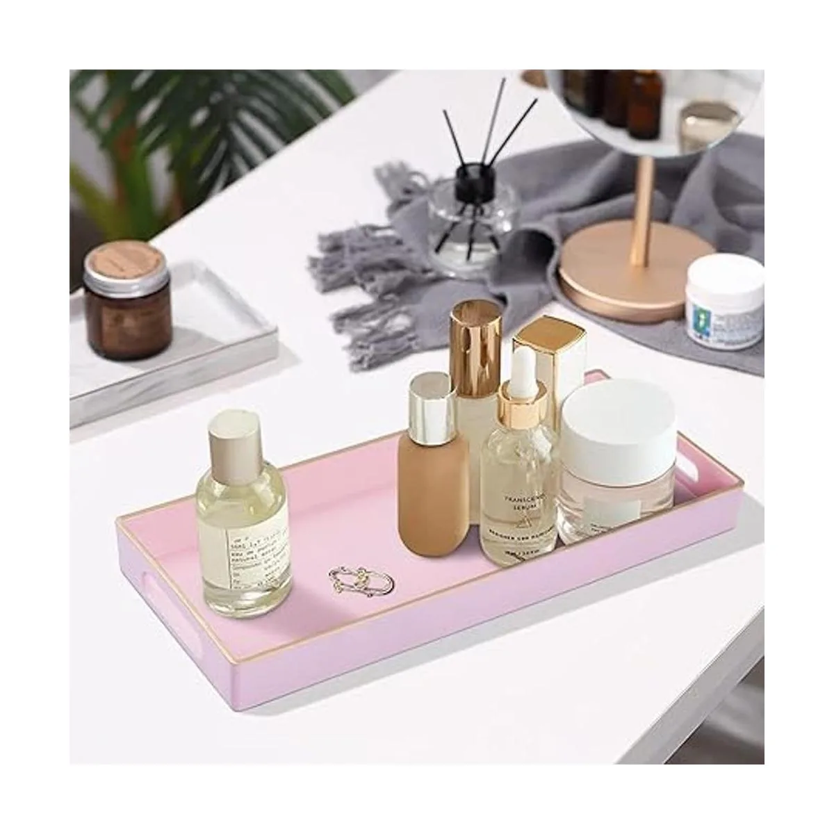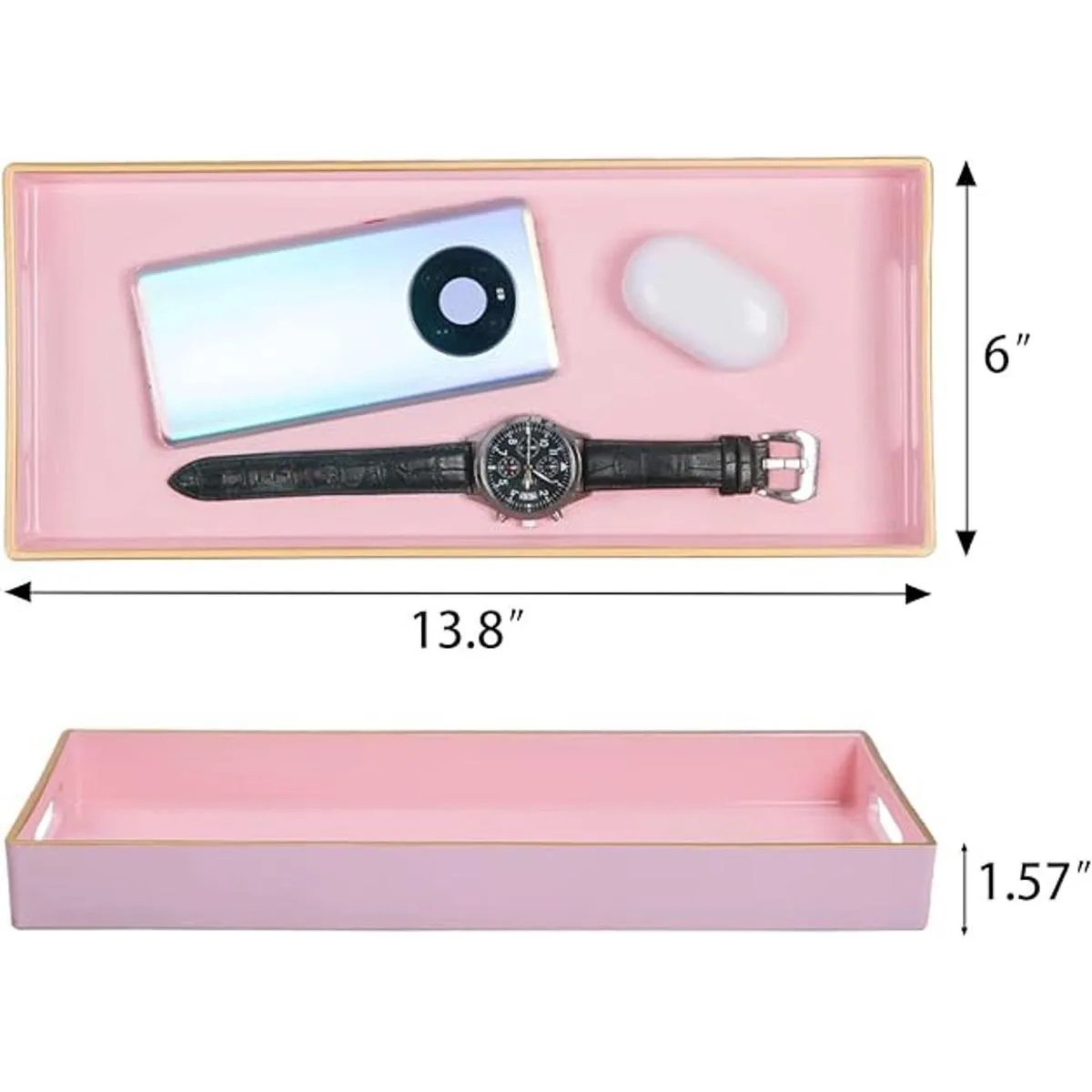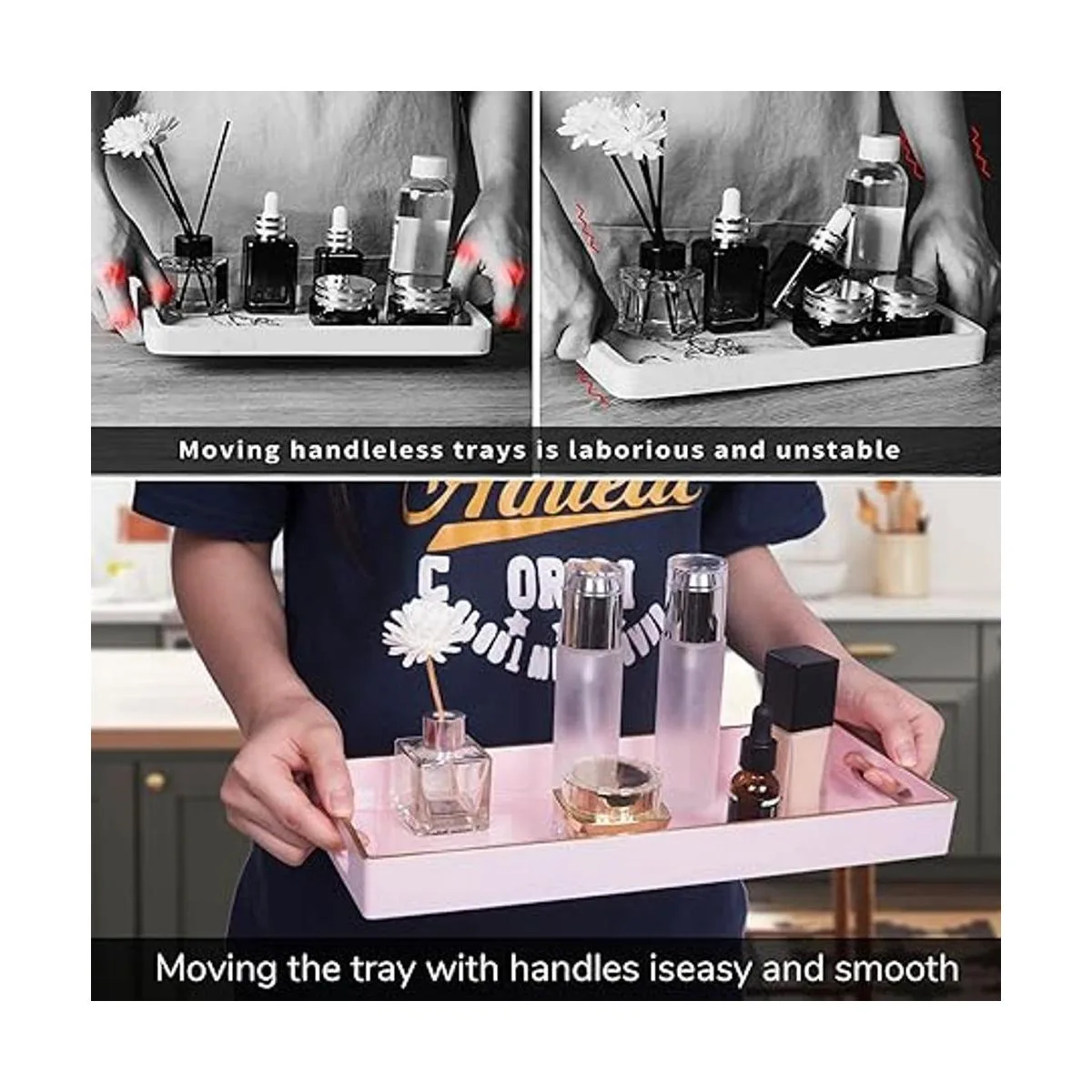 MAONAME Bandeja de tocador rosa, bandeja decorativa con asas, organizador de bandeja de almacenamiento para perfumes, joyas, maquillaje, 13.8 x 6 x 1.57 pulgadas