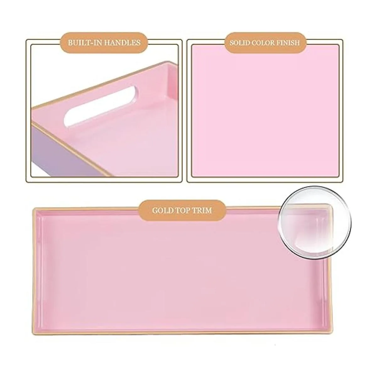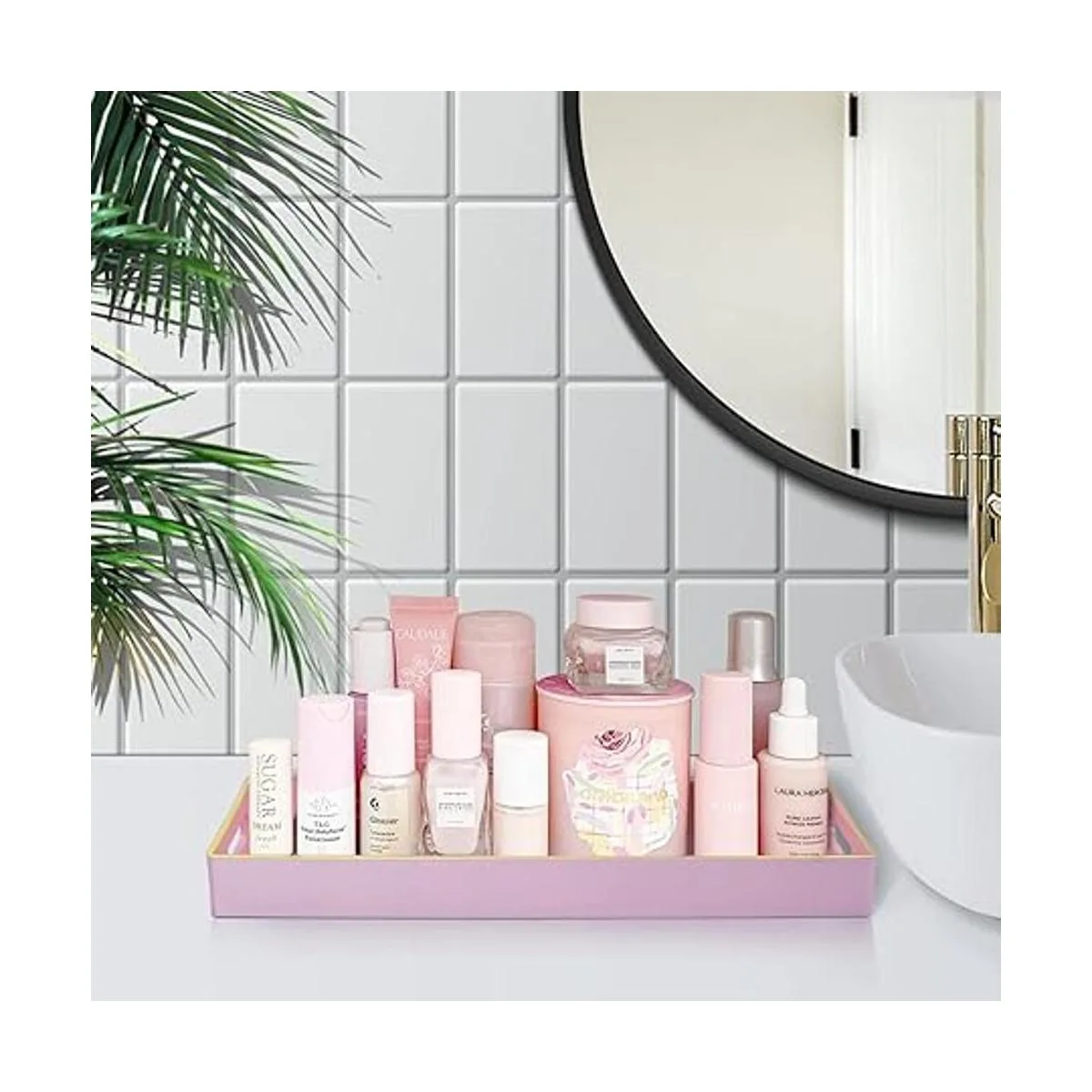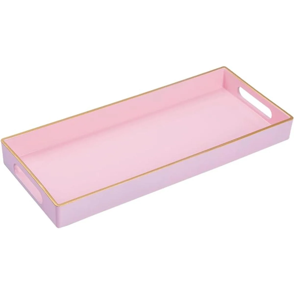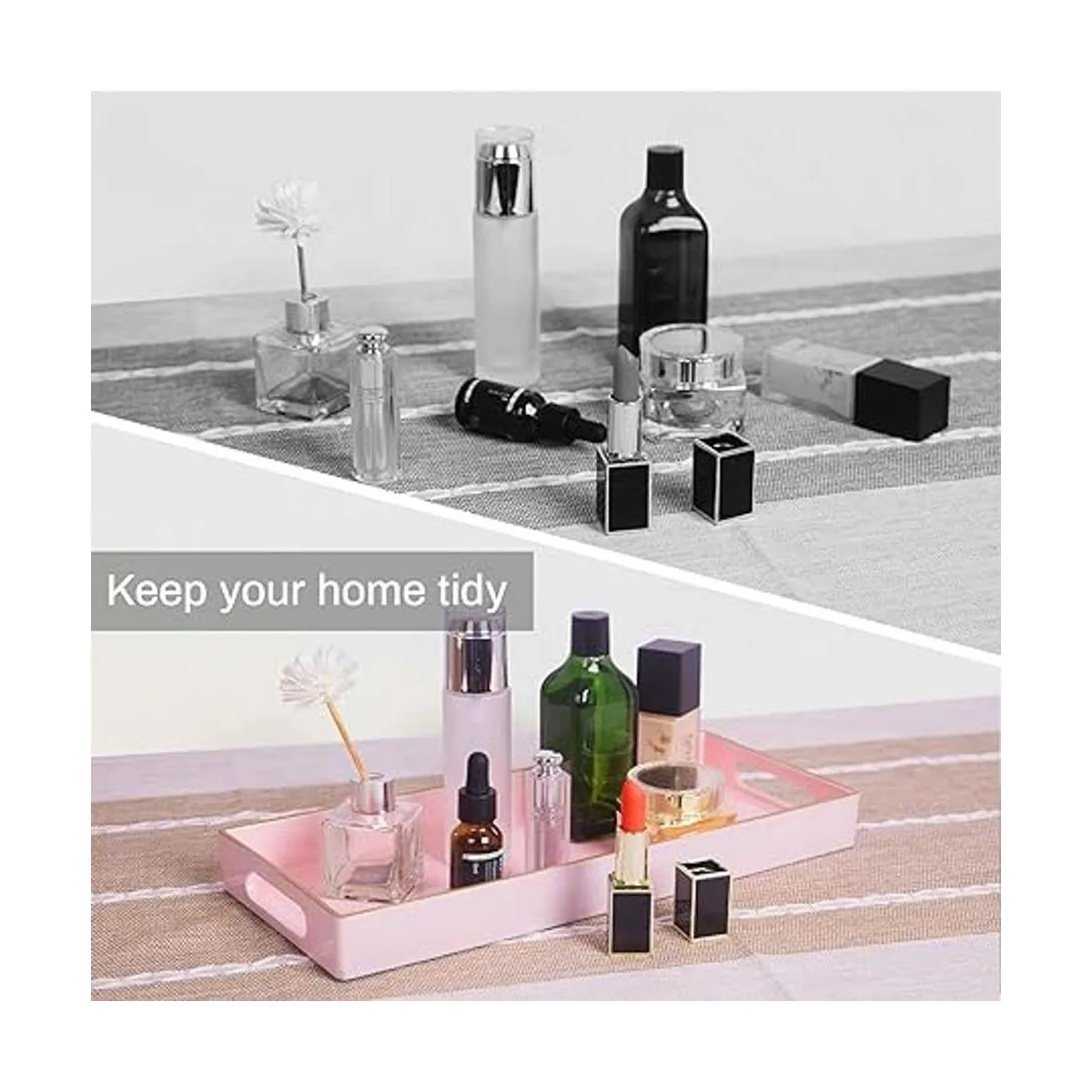 MAONAME Bandeja de tocador rosa, bandeja decorativa con asas, organizador de bandeja de almacenamiento para perfumes, joyas, maquillaje, 13.8 x 6 x 1.57 pulgadas