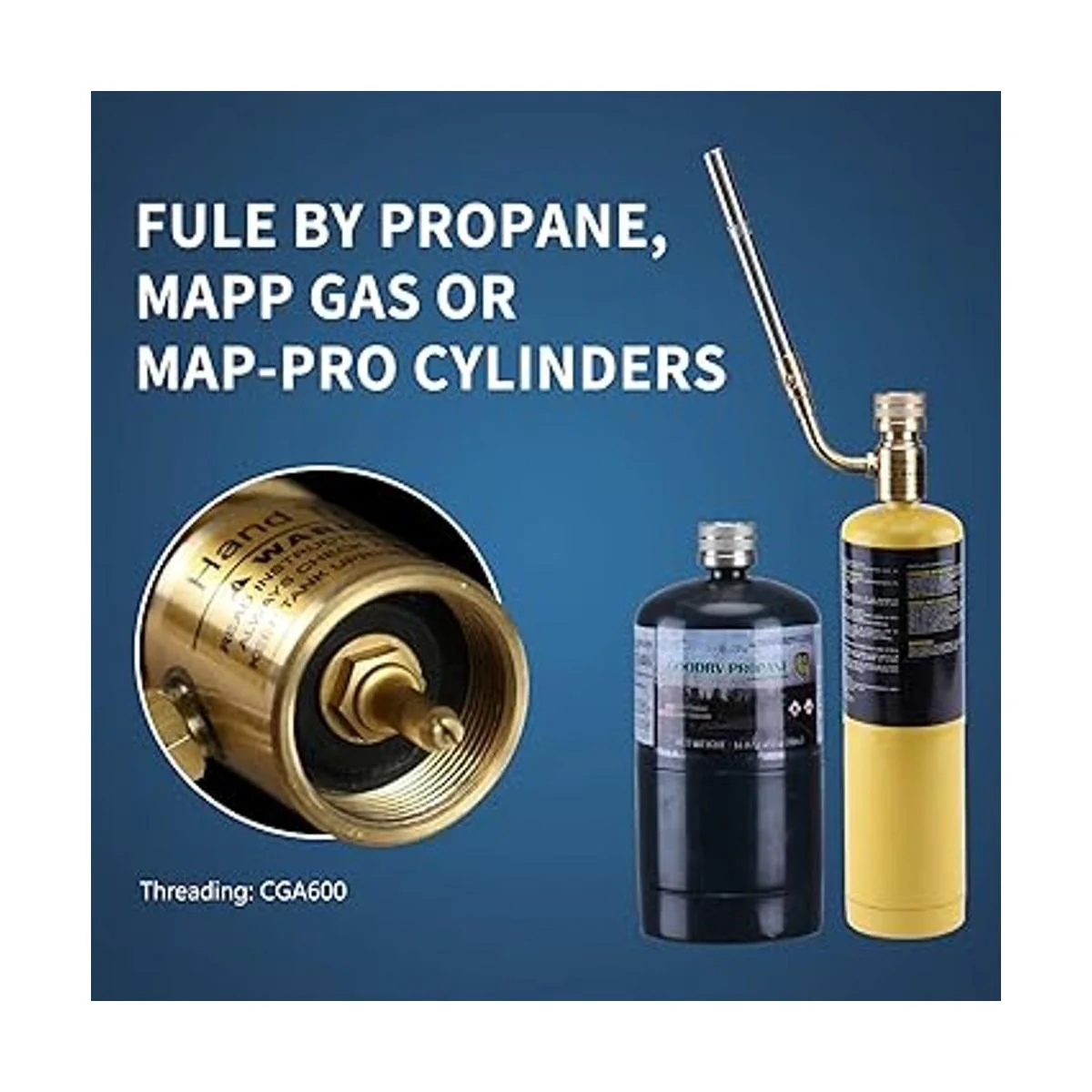 Rotación de 360 grados: la linterna de gas Mapp de encendido manual viene con una punta giratoria de 360 grados para cualquier trabajo de soldadura de dirección. Este cabezal de linterna de combustible de MAPP/MAP Pro/Propane CGA600.
