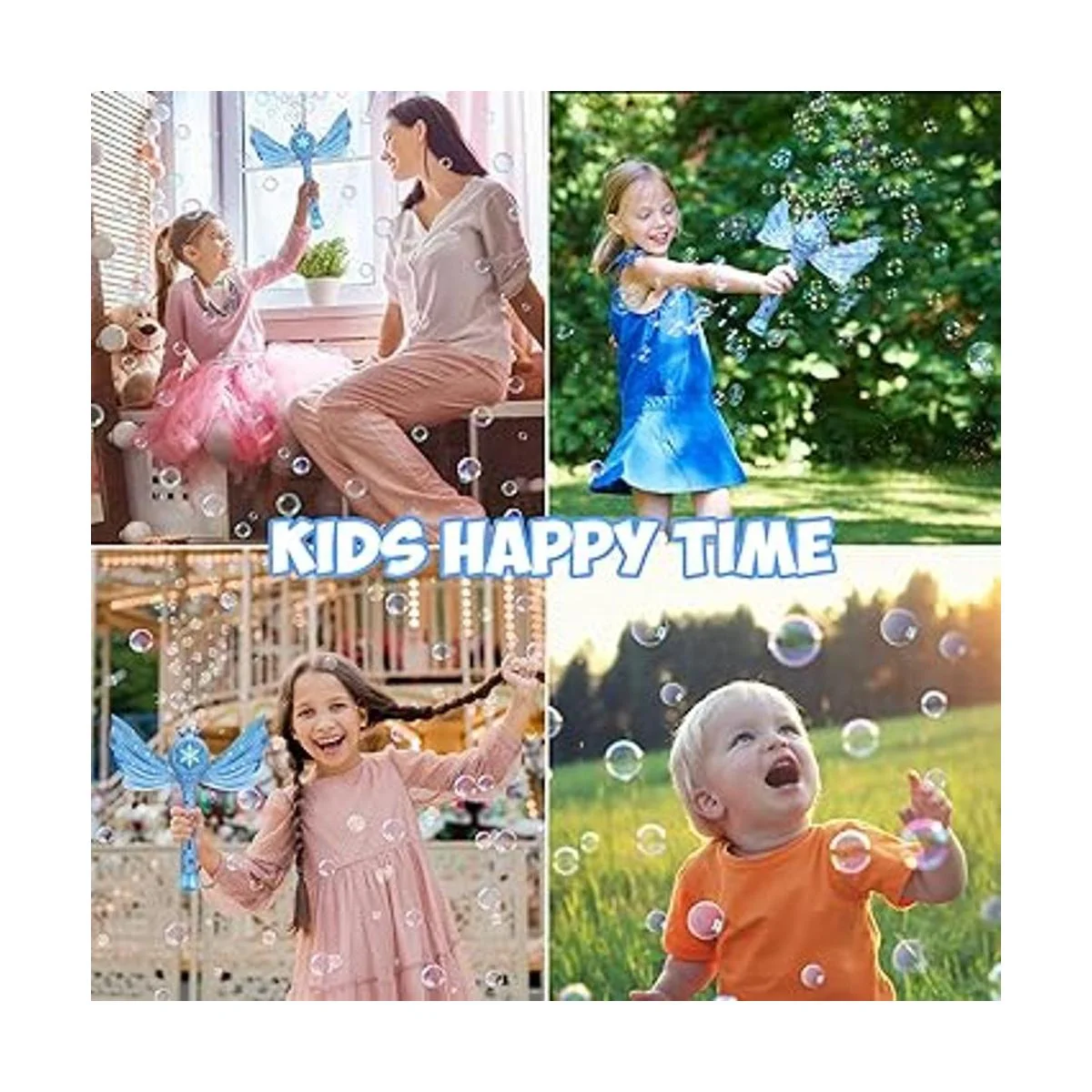 Material ABS apto para niños y componentes inofensivos, fácil de usar: sin esquinas afiladas, ángulos y bordes. Esta máquina de burbujas para niños está hecha de materiales ABS para una dureza superior y protección contra el óxido, con un botón para operar. El mango en forma de arco apto para niños hace que sea más fácil para los niños llevar y disfrutar persiguiendo burbujas.