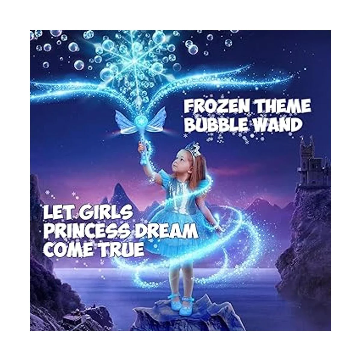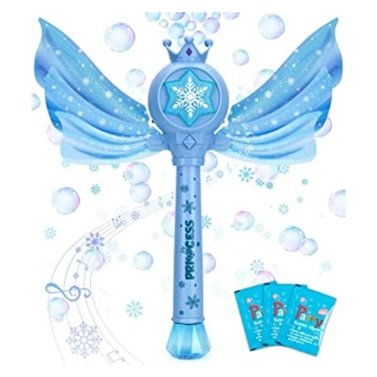 Máquina de burbujas de princesa temática congelada, varita mágica de burbujas: el diseño único del tema Frozen atrae la atención de los niños en gran medida, hace realidad los sueños mágicos de tu hijo Juguetes de Frozen ideales para niñas, soplador de burbujas perfecto para fiestas de cumpleaños, diversión de baño de bebé, escenas de fotos, parque y patio trasero, etc.