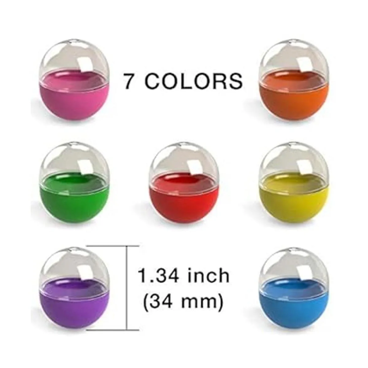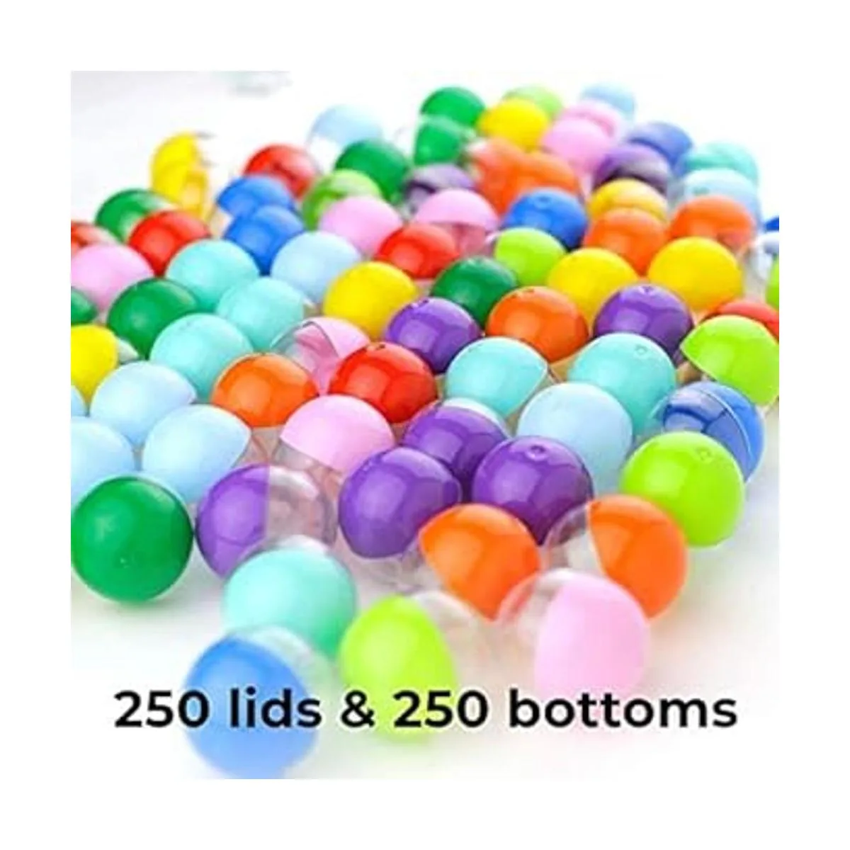 Cápsulas de plástico vacías para máquina expendedora de juguetes, tamaño 1.34 1.339 in. La mayoría de 250 cápsulas de Avend con 7 colores diferentes de tapas: amarillo, naranja, rosa, rojo, verde, azul claro, morado.