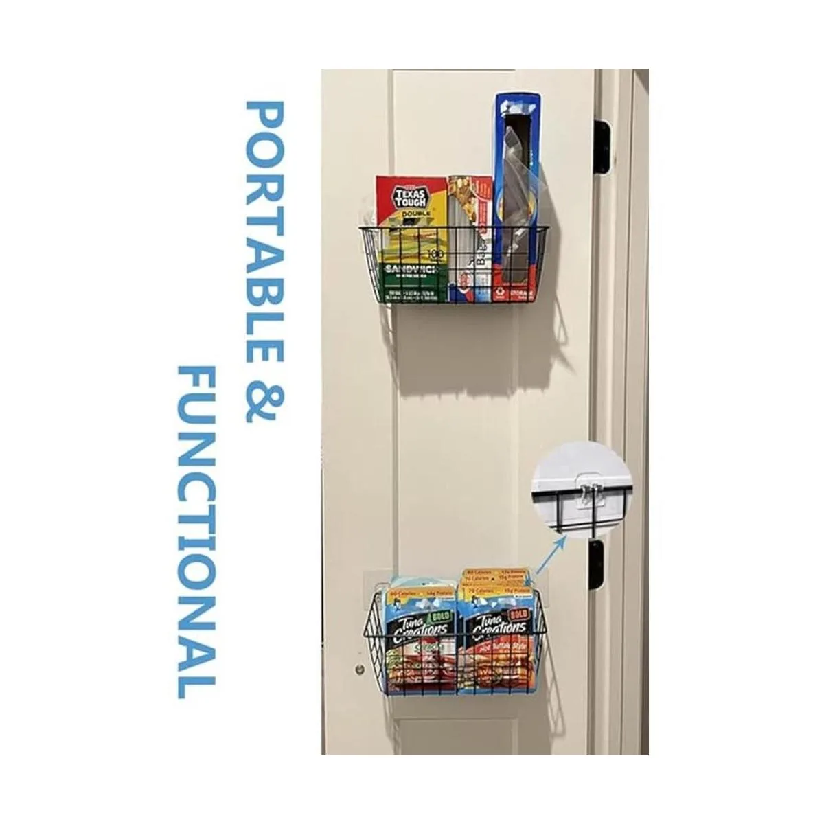 El organizador de armario MaraFansie sobre la puerta es ideal para organizar y almacenar botellas de especias, artículos de despensa, aperitivos, artículos de tocador, herramientas, suministros de manualidades, etc. La cesta MaraFansie se puede utilizar en cualquier lugar de la casa, en la cocina, en el baño, en el dormitorio y mucho más.