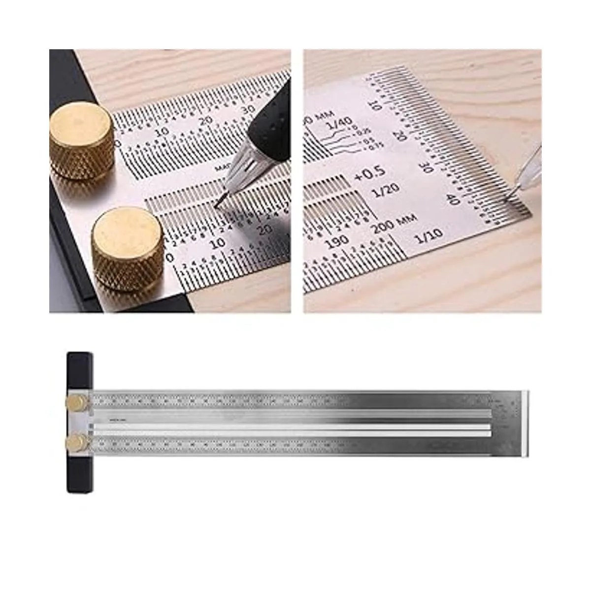 Marcado de precisión TRule de acero inoxidable tipo T, herramienta de medición de marcado con lápiz automático de 7.874 in11.811 in15.748 in 11.811 in