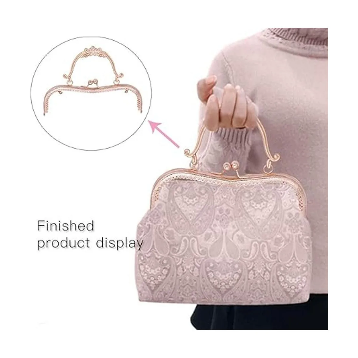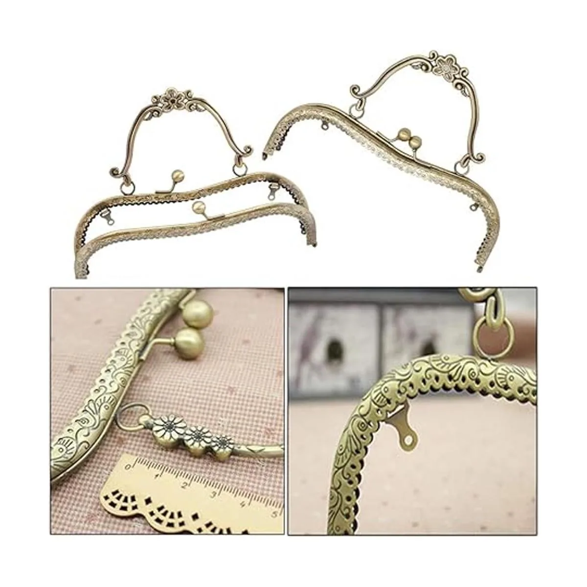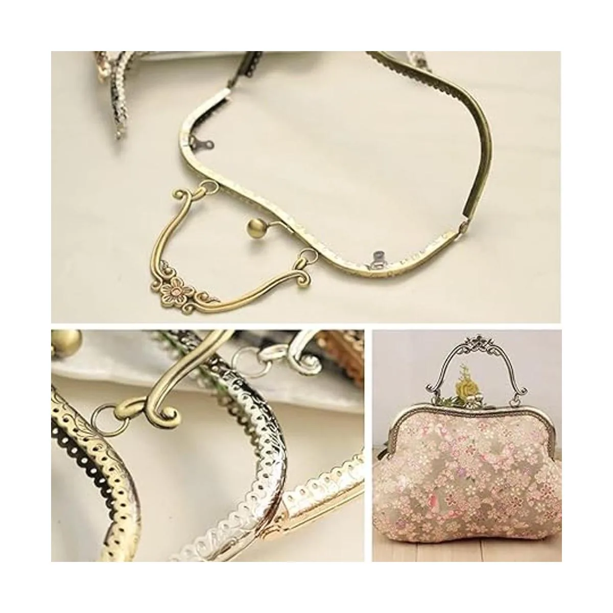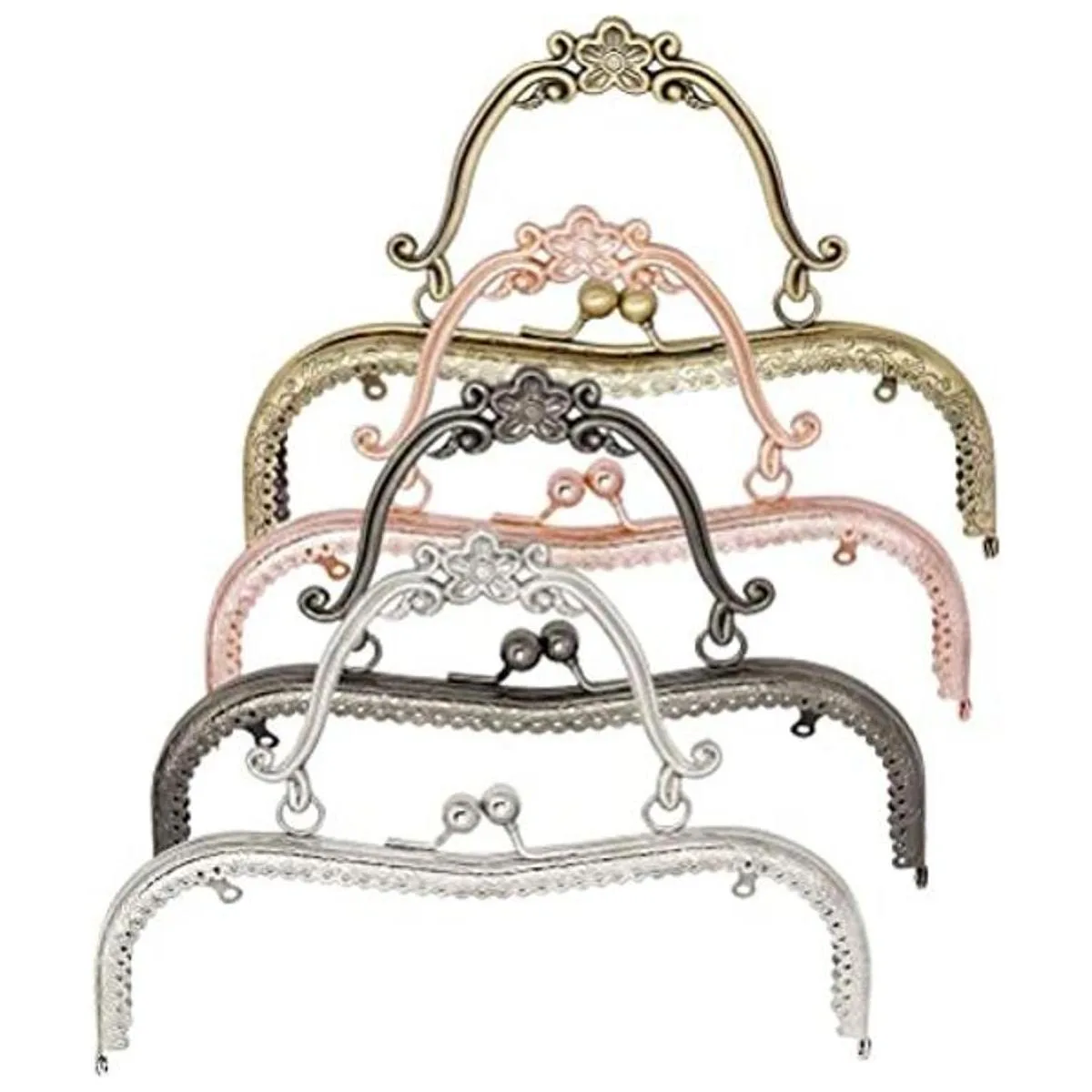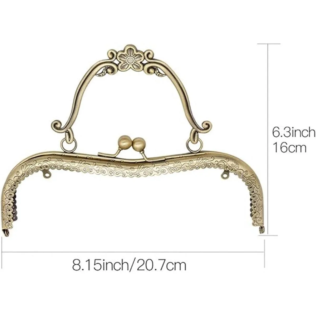 Cierres de bolsa: la longitud es de 8.14 pulgadas, 8.1 in, la altura es de 6.29 pulgadas, 6.3 in. Este juego de cierre de beso incluye bronce, plata, oro, metálico, total de cuatro colores, satisfaciendo tus diferentes necesidades en la fabricación de carteras.