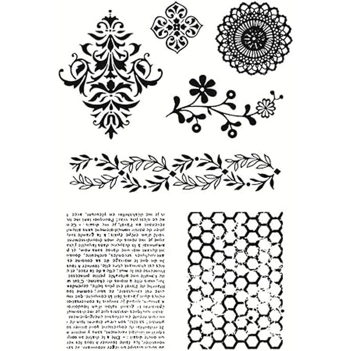 Diseño: Marco de fondo inglés de panal de abeja de primavera, sellos transparentes, patrón de hojas de encaje, sellos transparentes