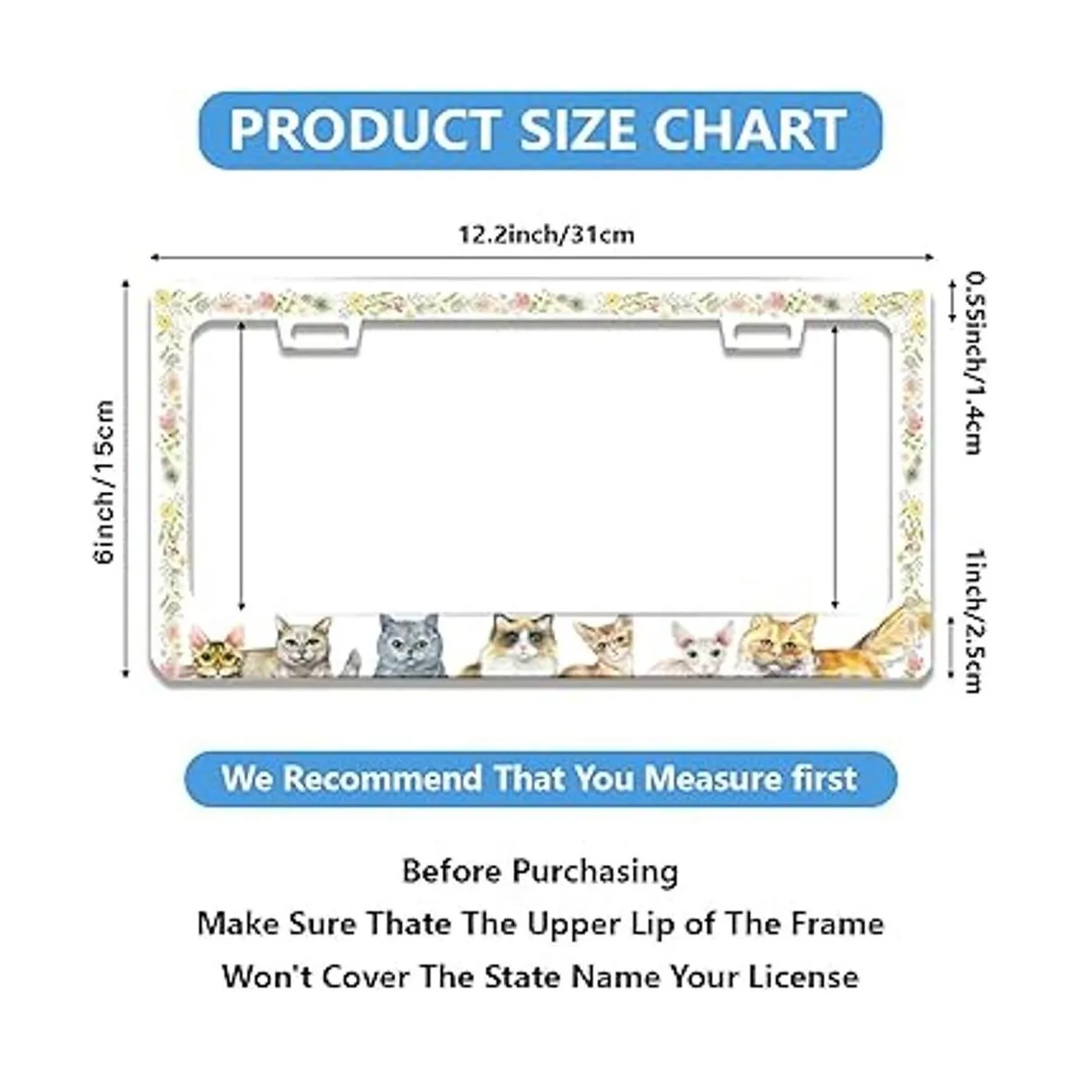 Marco de matrícula personalizado de metal con diseño de flor de gato, accesorio decorativo de 2 agujeros y tornillos para matrículas estándar de EE. UU. Tamaño 12.2 x 6.3 pulgadas