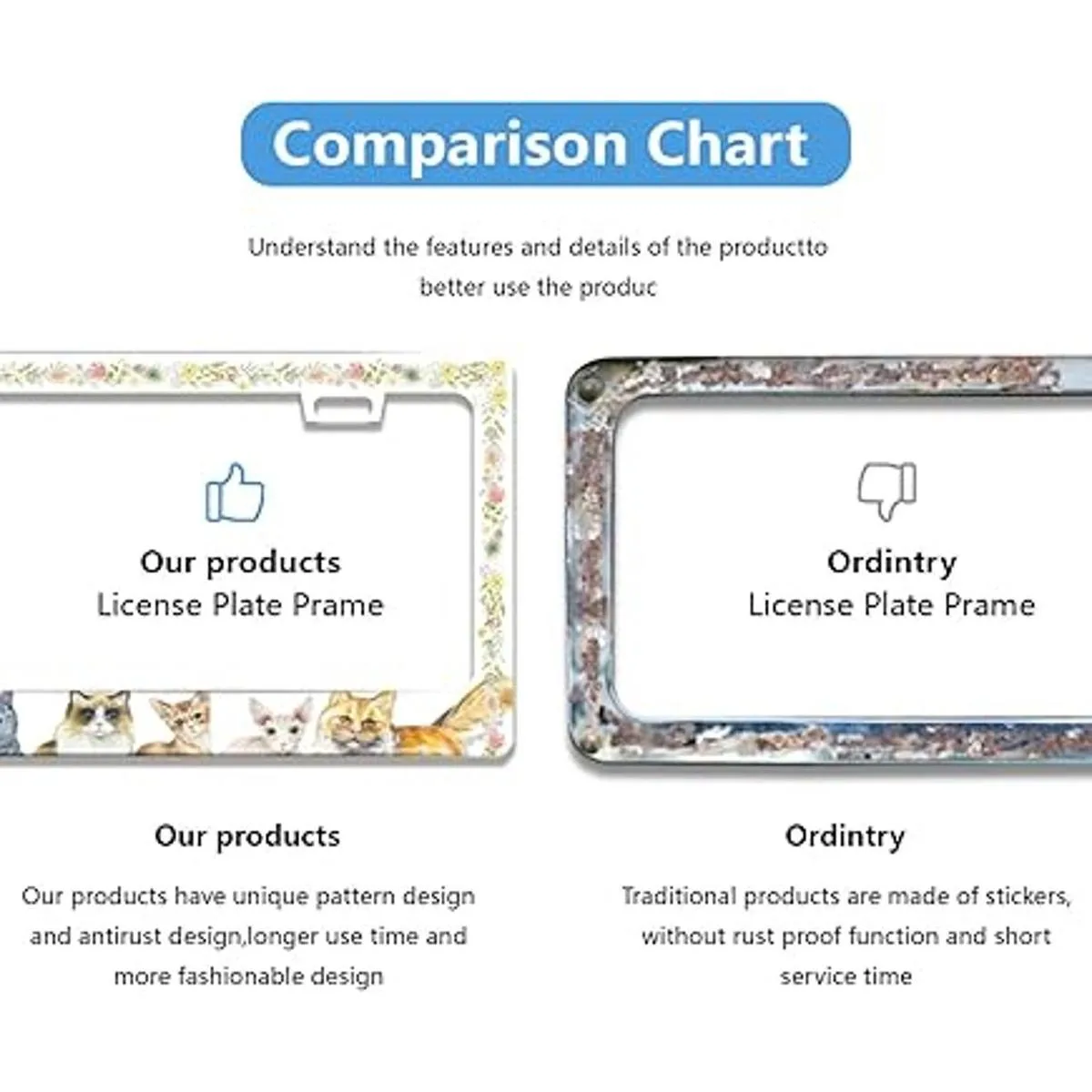 Rendimiento del producto El material es resistente al óxido y al desgaste, y el marco de la matrícula es ligero. No solo es duradero y de alta calidad, se puede utilizar durante mucho tiempo y puede soportar todo tipo de mal tiempo sin preocuparse por la decoloración. La potente estructura de soporte de fuerza mejora en gran medida la estabilidad, no bloquea ninguna letra y número en la placa de matrícula, y es fácil de limpiar. No hay nada de malo en elegirlo