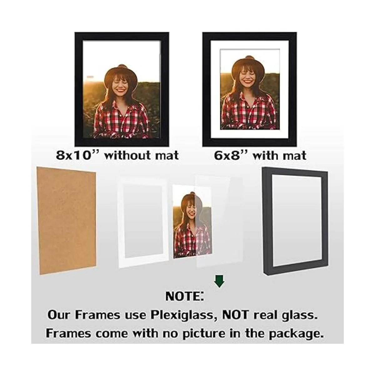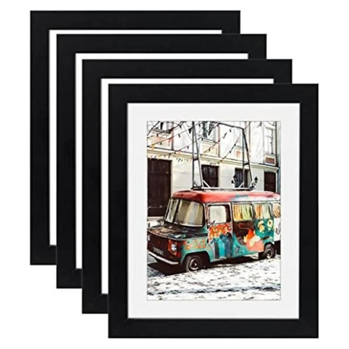 Paquete de 4 marcos de fotos negros de 8 x 10 pulgadas: muestra fotos de 6 x 8 pulgadas con alfombrilla o 8 x 10 pulgadas sin alfombrilla. Alfombrilla incluida.