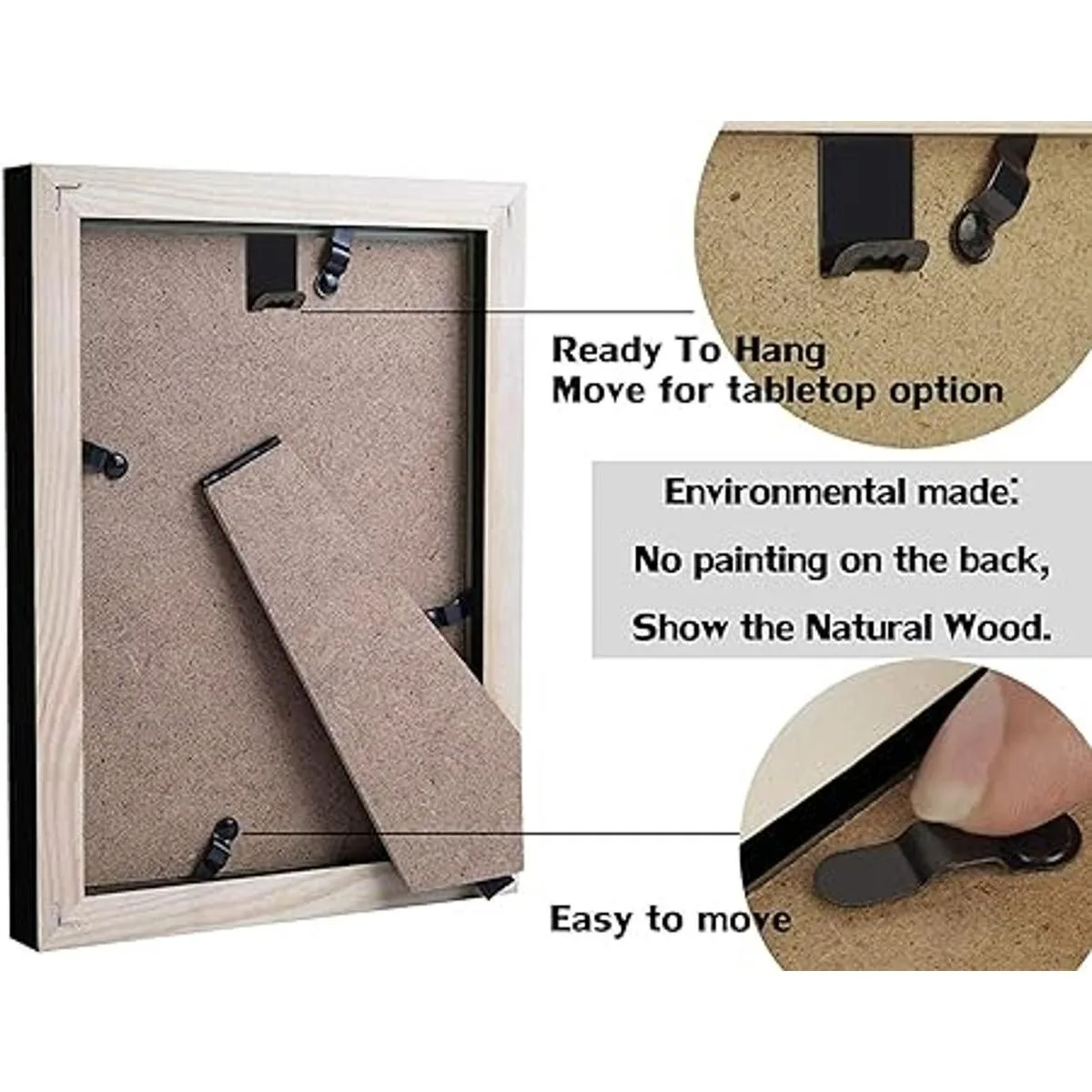 Marcos de fotos negros de 8 x 10 pulgadas, madera maciza natural, paquete de 4 para montaje en pared y exhibición de mesa
