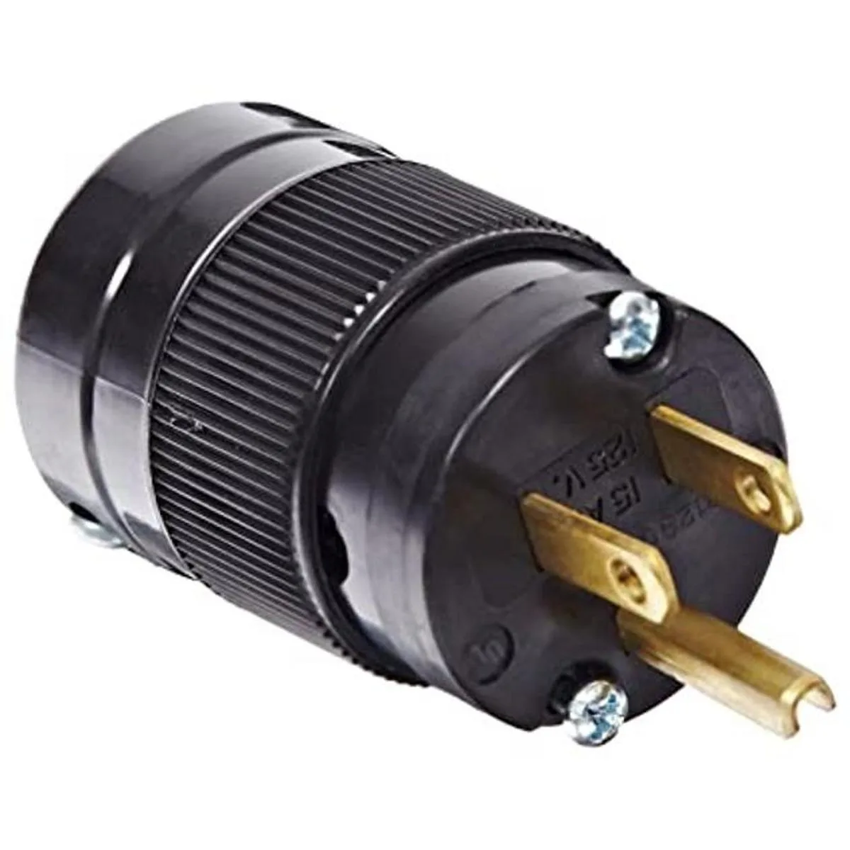 Marinco 5266BL 15 amperios, 125 voltios, 2 polos, 3 cables, enchufe de hoja recta, color negro