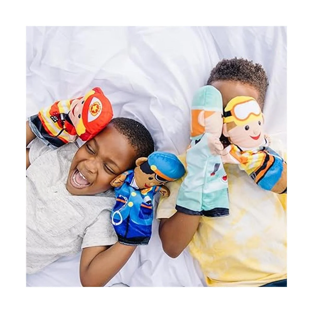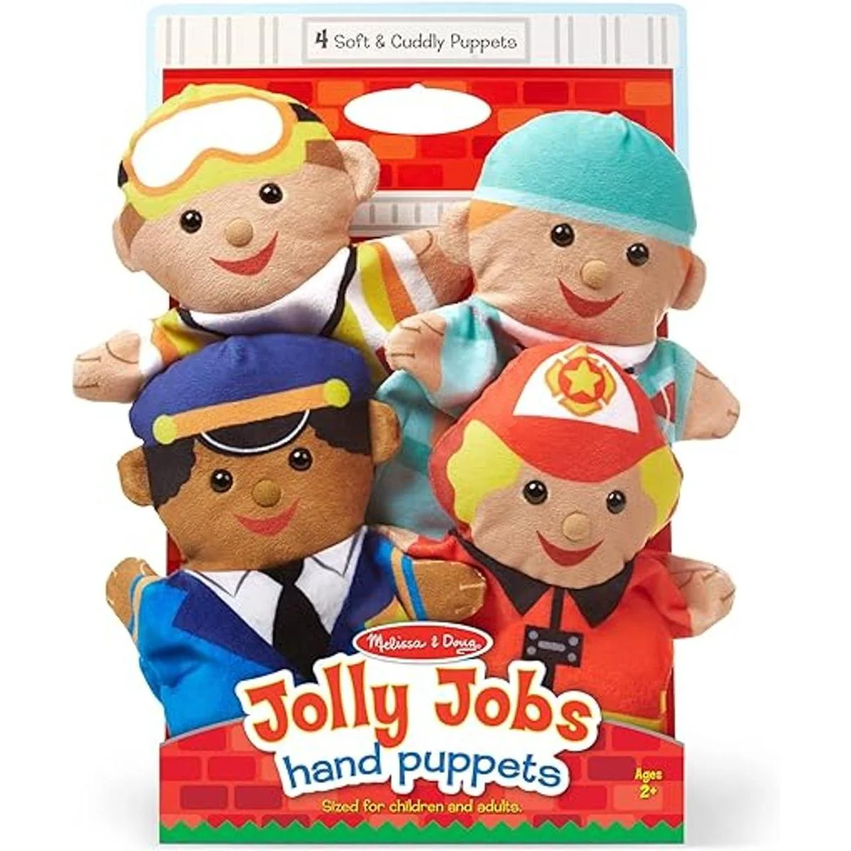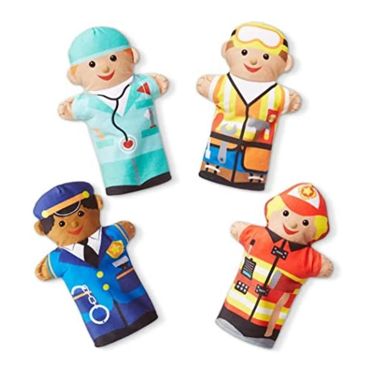 Marionetas de mano Melissa Doug, Jolly Helpers juego de 4, trabajador de la construcción, doctor, policía y bombero