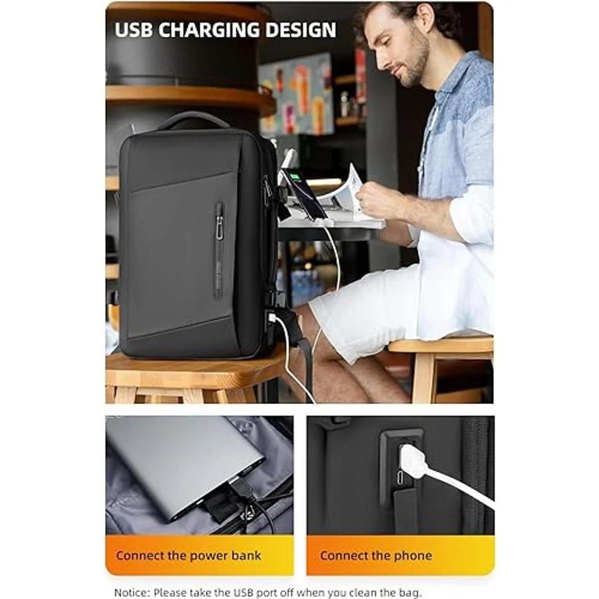 Cremallera YKK y puerto de carga USB: nuestra mochila para portátil con cremallera de metal duradera YKK se abre y cierra suavemente para garantizar un uso seguro y duradero. Cargador USB integrado y un cable de carga integrado para que puedas cargar en cualquier momento y en cualquier lugar. Ten en cuenta que esta mochila no proporciona un banco de energía, solo un método de carga conveniente.