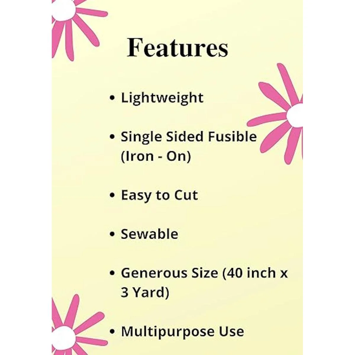 Calidad premium y fusible fuerte: la interfaz fusible de una cara se puede fusionar fácilmente con una plancha caliente. La interfaz se fusiona fuertemente con la tela proporcionando estructura, resistencia y rigidez a la tela.