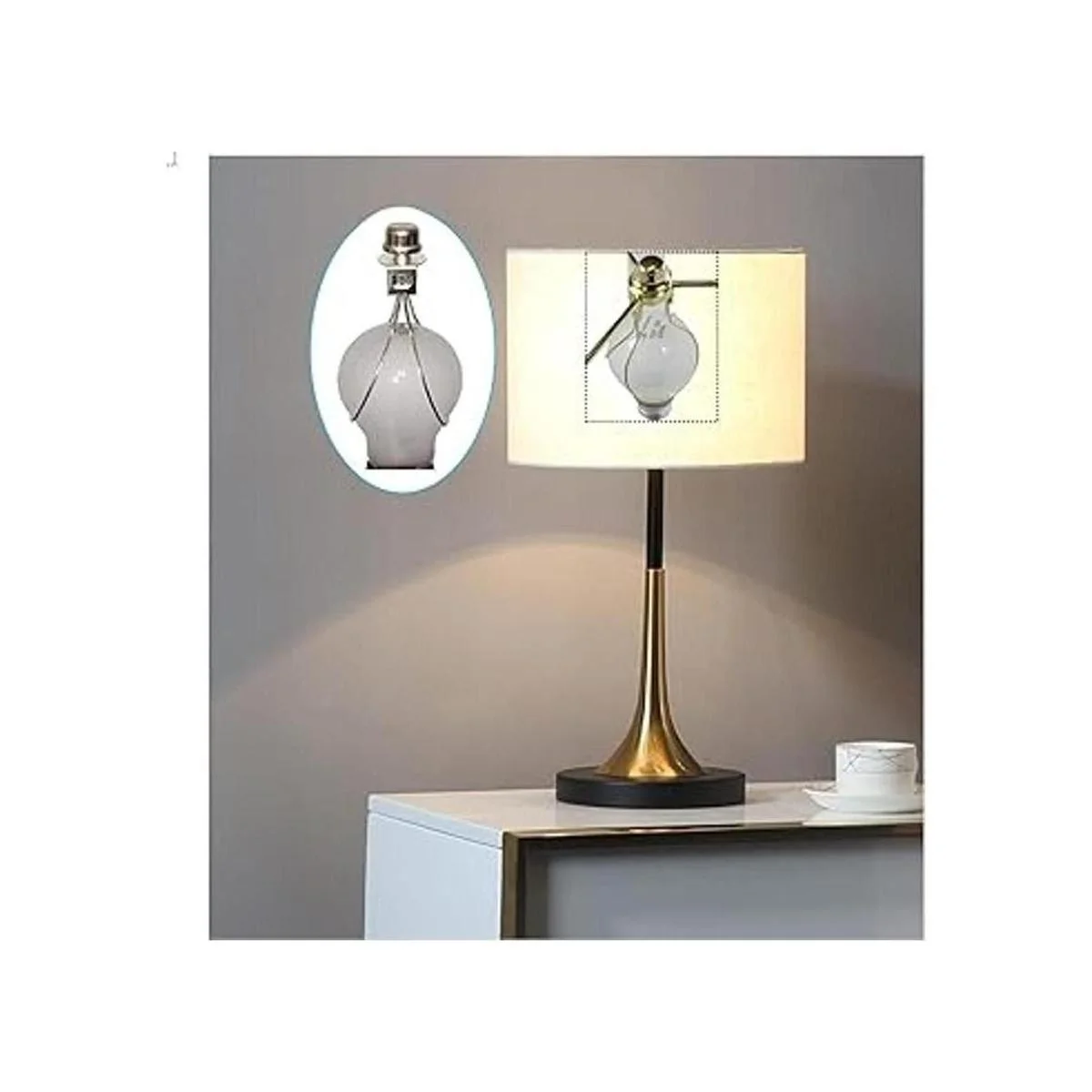 Tamaño: total de aproximadamente 4.7 in de altura, y se coloca sobre la bombilla, roscas de 1/4 pulgadas a 88.6 ft en la parte superior para adaptarse a cualquier remate de lámpara estándar.