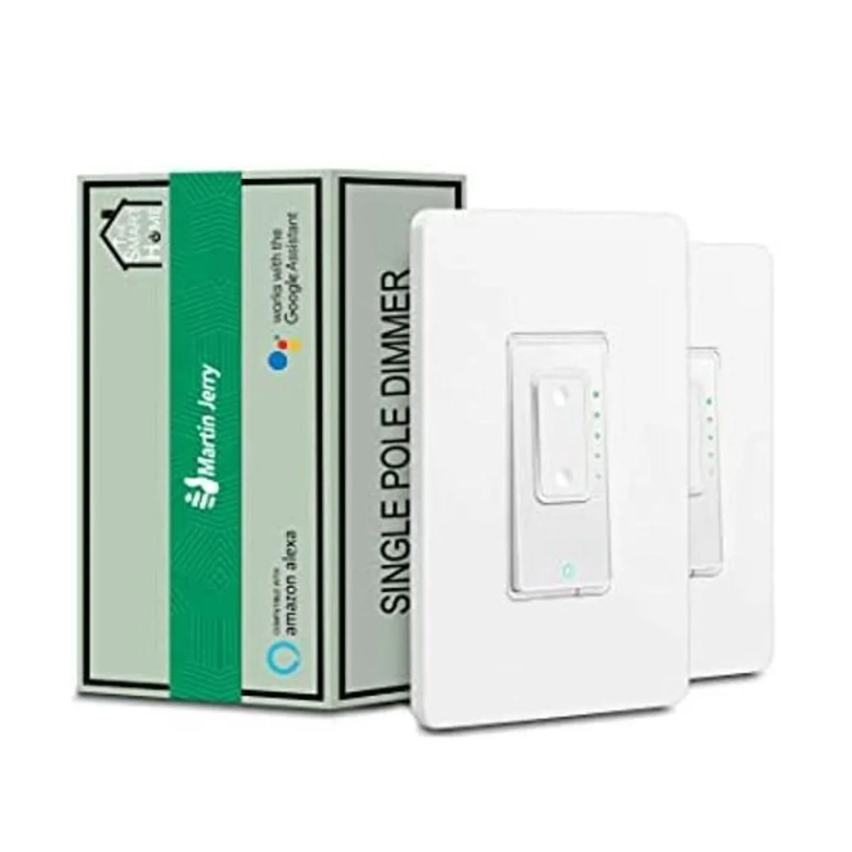 Martin Jerry Interruptor de regulador de intensidad inteligente compatible con Alexa como regulador de luz WiFi, no requiere concentrador, color blanco, funciona con Google Assistant, 400.00watts