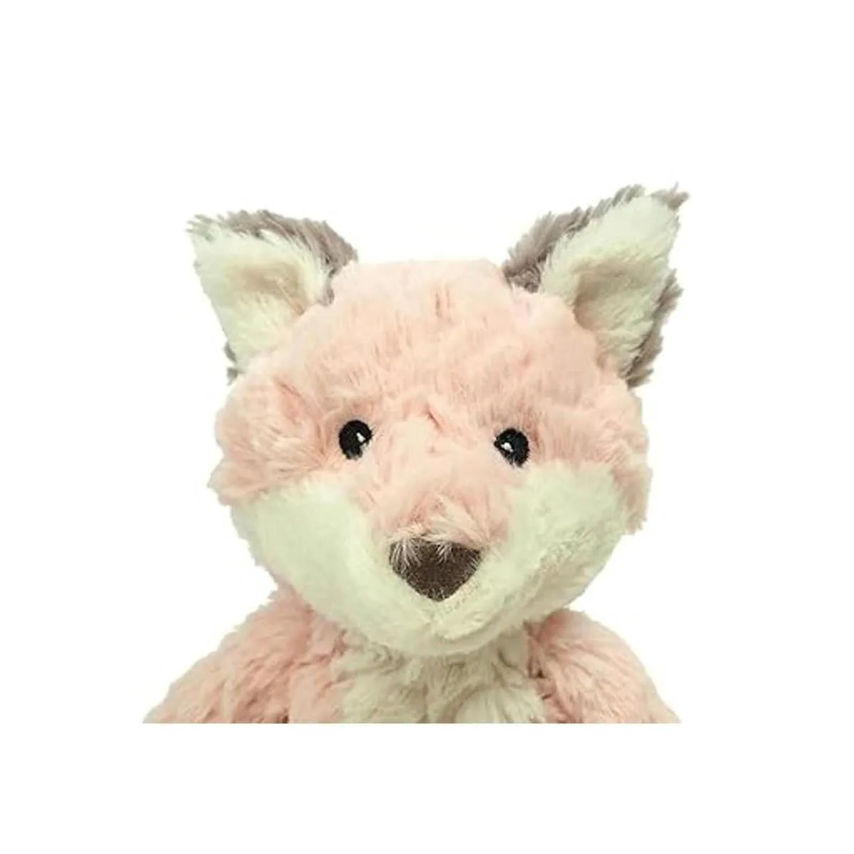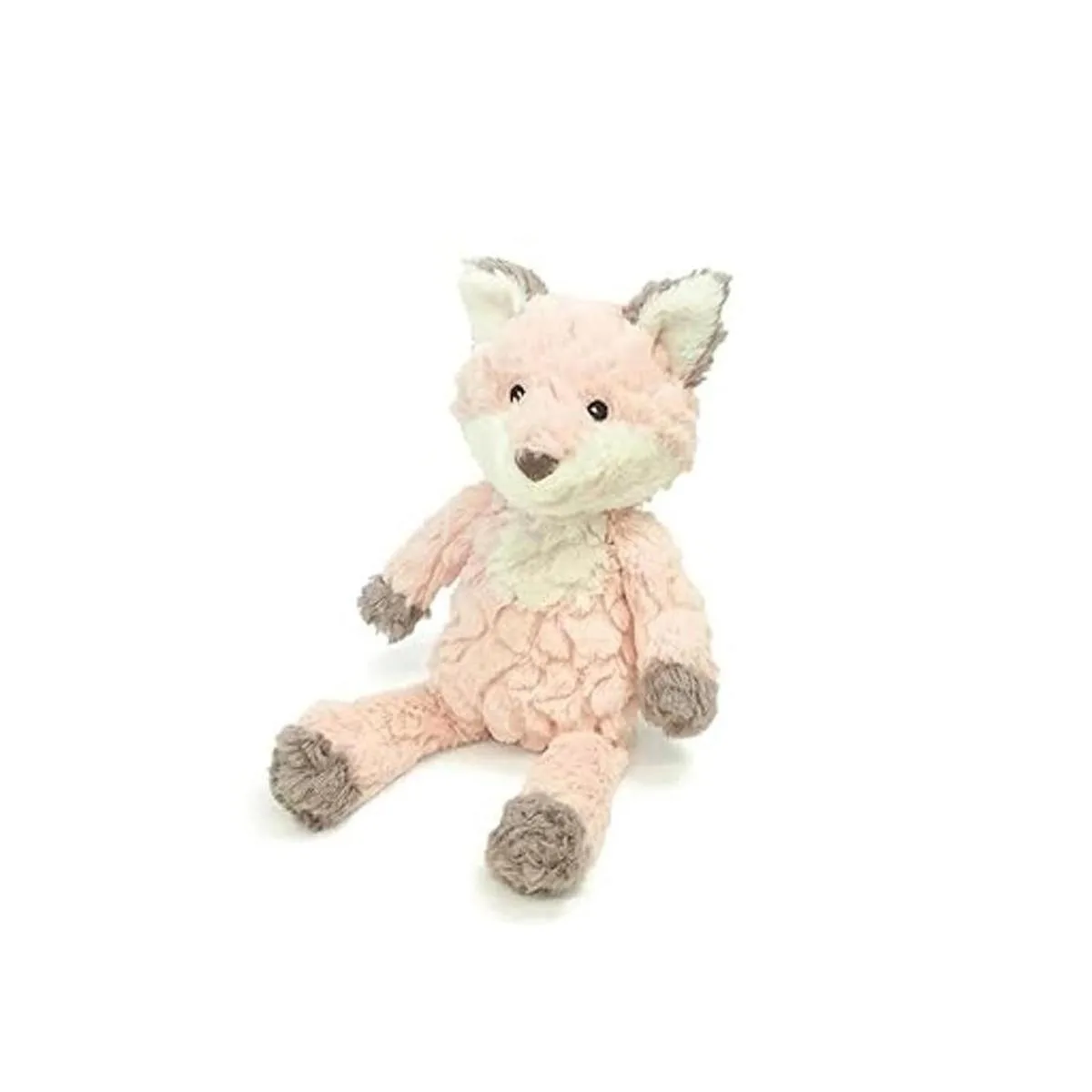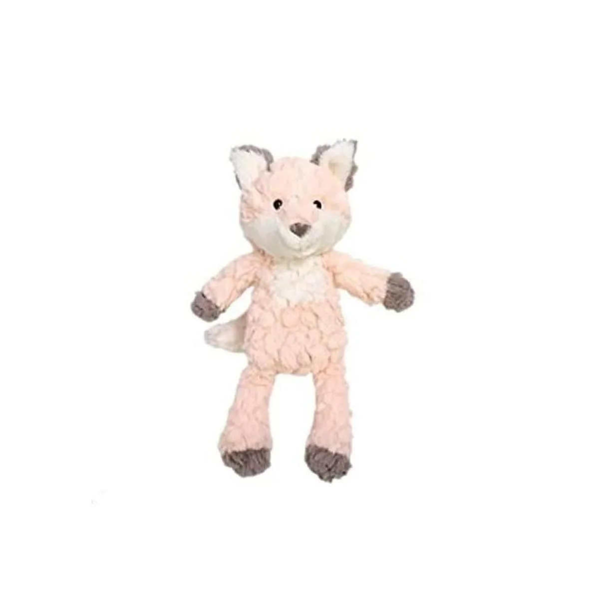 Putty Nursery Fox es un dulce amigo hecho con tela texturizada ultrasuave en rosa rubor, gris pardo y blanco
