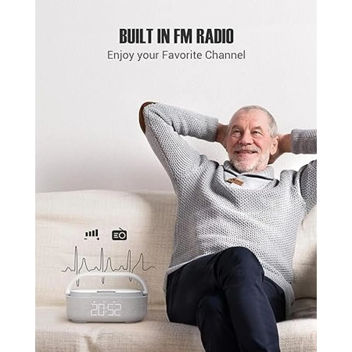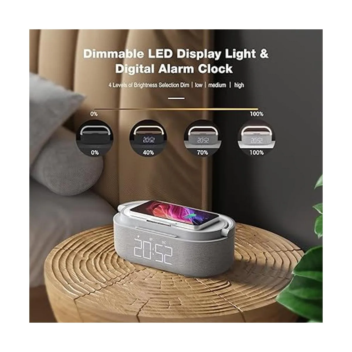 Más nuevo 2022 Altavoz Bluetooth con reloj despertador digital, cargador inalámbrico, radio de reloj FM, luz nocturna LED ajustable, altavoces inalámbricos duales, batería de 2500 mAh para dormitorio, hogar, gris con adaptador