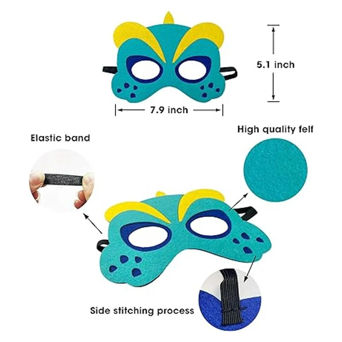 Contenido y material: este juego incluye 24 paquetes de máscaras de dinosaurio, que se pueden utilizar para tus increíbles fiestas temáticas de dinosaurios, fiestas de cumpleaños, regalos de fiesta de dinosaurios y mucho más Hecho de 100 fieltro con diadema altamente elástica, estas máscaras te traerán una sensación cómoda y segura cuando las utilices.