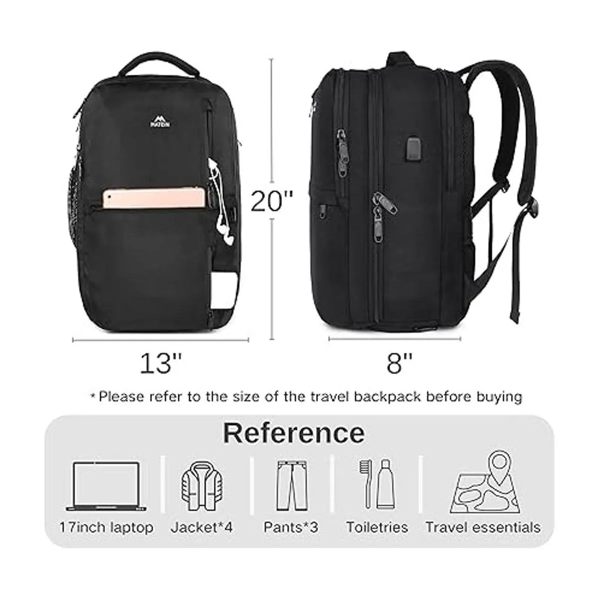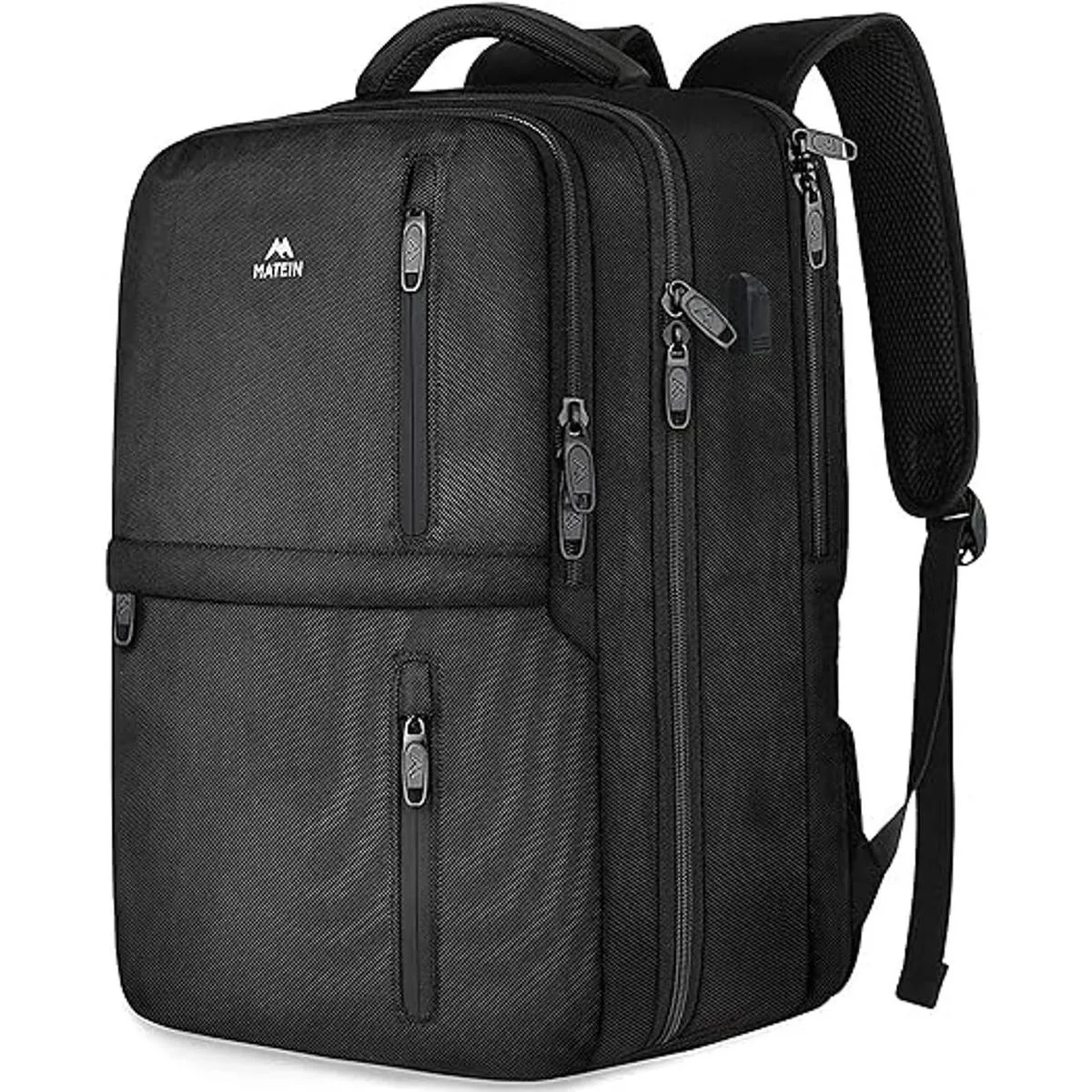 MATEIN Mochila de viaje, equipaje de mano de transporte aprobado por vuelos de 40 litros, resistente al agua, antirrobo, bolsa de fin de semana grande para laptop de 17 pulgadas, color negro