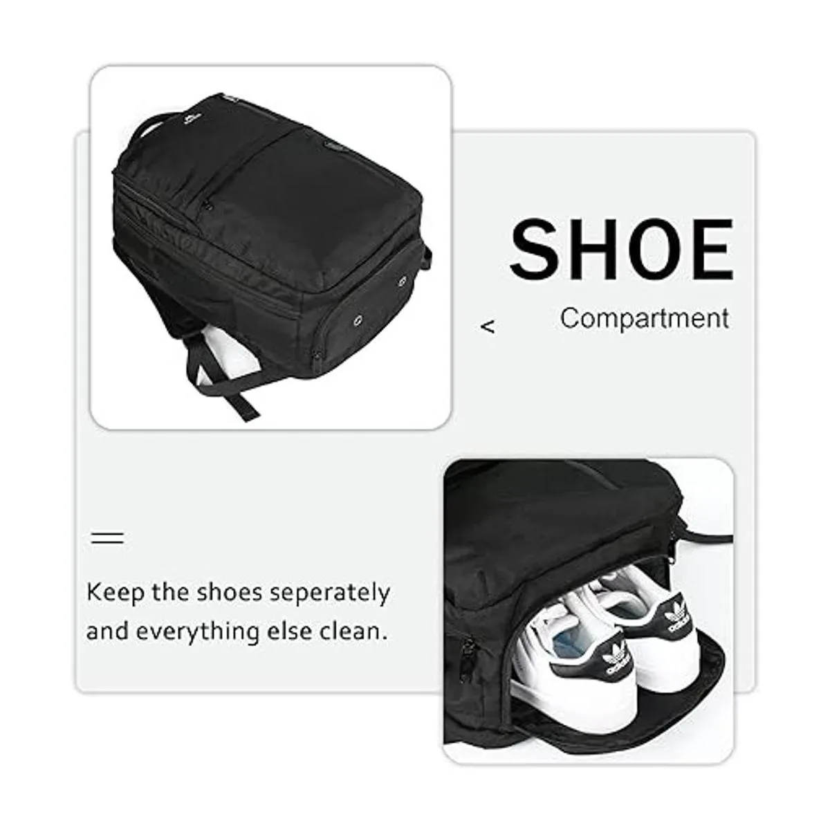Compartimento para zapatos: un compartimento para zapatos está hecho en la parte inferior de la mochila escolar para mantener los zapatos por separado y todo lo demás limpio. Este almacenamiento de zapatos es lo suficientemente amplio como para contener tallas 1012 tanto para zapatos de mujer como para zapatos de hombre, que también se pueden utilizar como bolsas de artículos de tocador y para otros usos; hay dos agujeros de ventilación en el compartimento de zapatos, lo que hace que sea transpirable