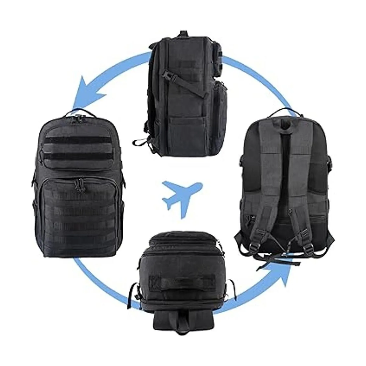 Gran capacidad y múltiples compartimentos: mochila táctica con compartimento para portátil TSA que se adapta a portátiles de menos de 17 pulgadas, y se puede colocar plana a 180 grados que atraviesan la seguridad rápidamente. Con una amplia zona de almacenamiento principal, compartimento para gafas de sol, bolsillo lateral para botellas, bolsillo organizador frontal y un compartimento de acceso rápido CCW. Gran capacidad de 32 litros, tamaño organizado y aprobado por aerolíneas 19.5 x 12.5 x 8 pulgadas lo que lo hace útil como una mochila de viaje