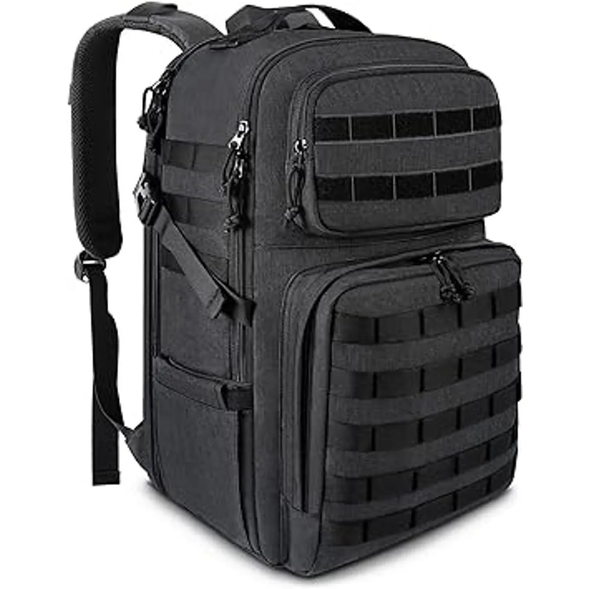 Estilo táctico militar: la parte delantera de la mochila Molle y ambos lados vienen con correas Molle, en todo el mundo para fijar bolsas tácticas adicionales, ganchos u otros dispositivos pequeños. El sistema Molle ha sido esencial para los primeros auxilios, patrullas, soldados, trabajadores de servicio público. Se puede utilizar como mochila de asalto, bolsa de supervivencia, bolsa de emergencia, mochila al aire libre o mochila de senderismo, etc