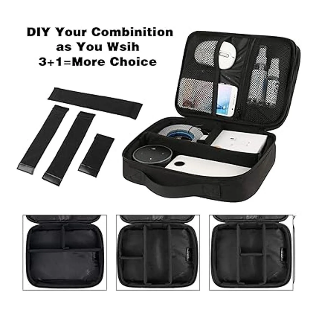 DIY. Varias opciones de almacenamiento: 4 separadores acolchados desmontables están disponibles para que puedas hacer tú mismo el diseño que necesites. Optimiza el espacio del diseño DIY como quieras. Puede sostener perfectamente tus accesorios más grandes como Dreamstation Go, Nintendo Switch, cargador de pared, cargador inalámbrico, lector Kindle