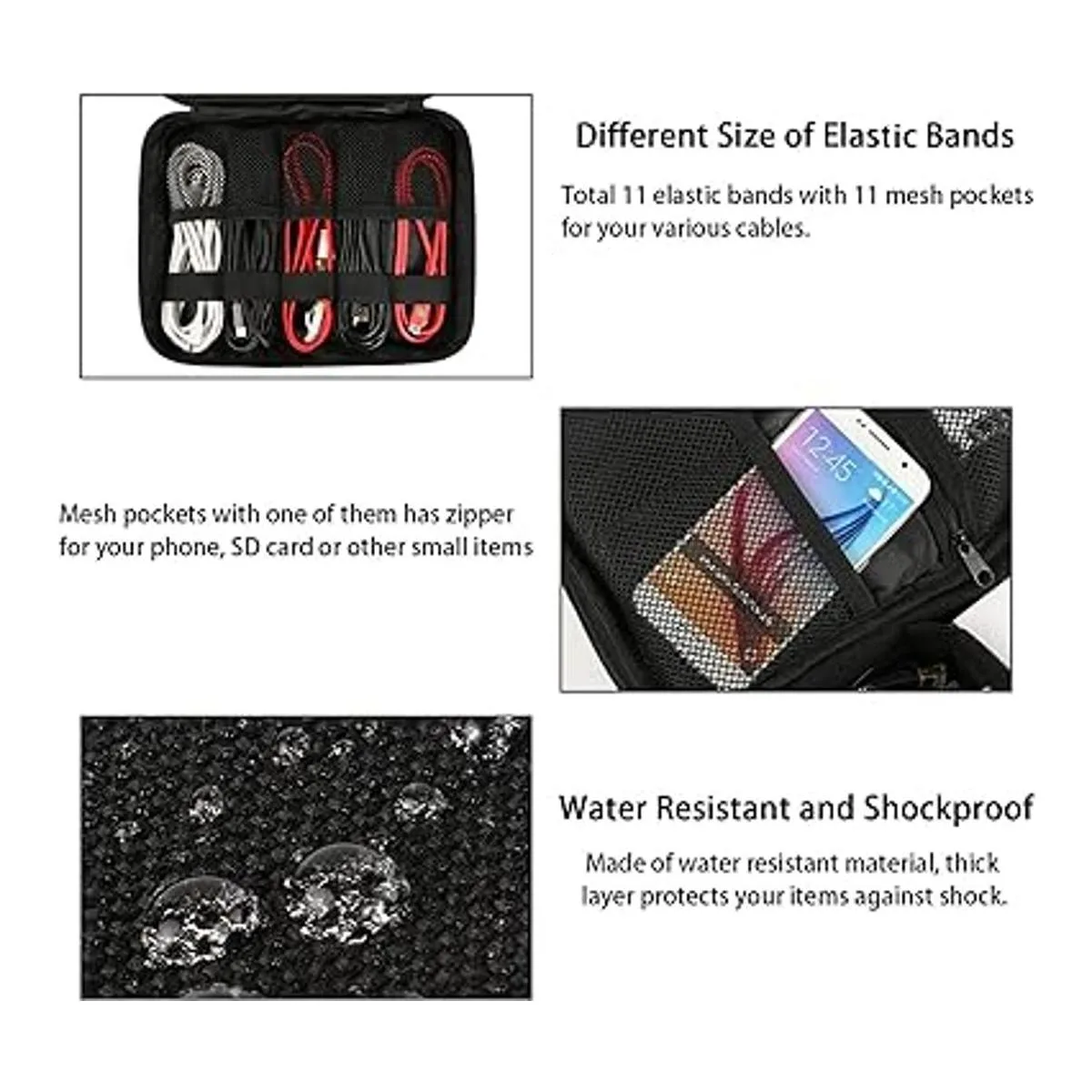 Gran capacidad y doble capa: esta funda electrónica mantendrá tus accesorios electrónicos bien organizados, tiene dos capas interiores principales separadas, la sección superior tiene bandas elásticas de varios tamaños con bolsillos de malla para tus diferentes longitudes de cables. La otra sección tiene 3 bolsillos de malla para tu pequeño dispositivo como tarjeta SD, USB, disco duro. Los bolsillos delanteros y traseros proporcionan una manera más fácil de almacenar tu iPad, teléfono celular o banco de energía que otras bolsas