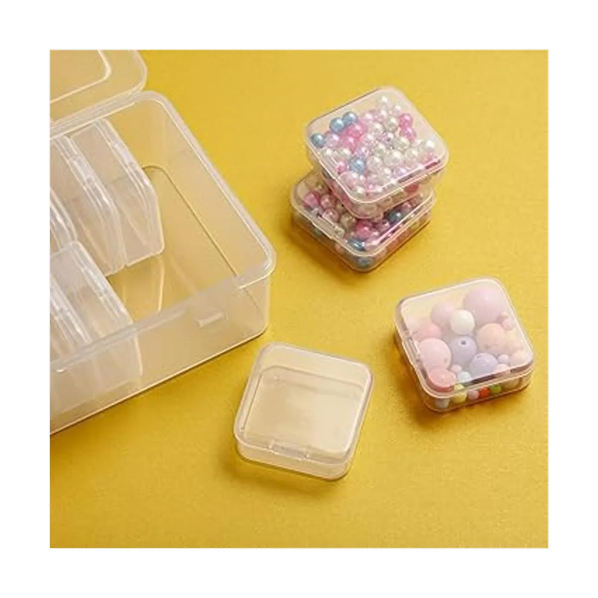 Diseño útil: cada caja transparente tiene una tapa con bisagras, que puede evitar que tus artículos se contaminen por el polvo y la suciedad, y también evitar que los artículos se caigan. Con buenas características de seguridad, puedes utilizar estas cajas para llevar tus pequeñas cuentas o joyas a cualquier lugar.