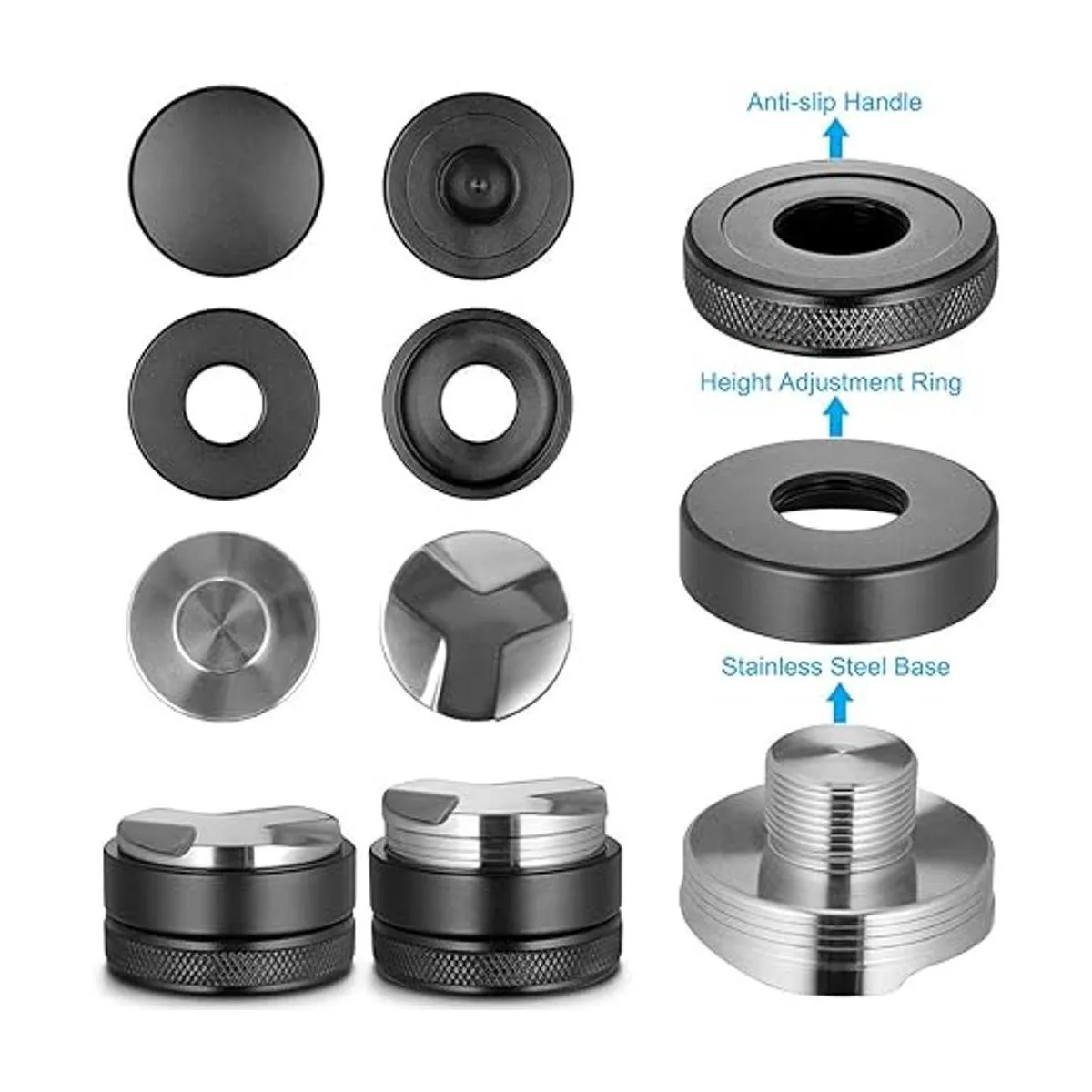 Profundidad ajustable: la altura se ajusta fácilmente por su mecanismo de tornillo no requiere tornillos de sujeción, cuñas o llaves Allen para adaptarse a diferentes dosis o cestas, puedes ajustar la profundidad deseada para una presión constante de apisonamiento cada vez.