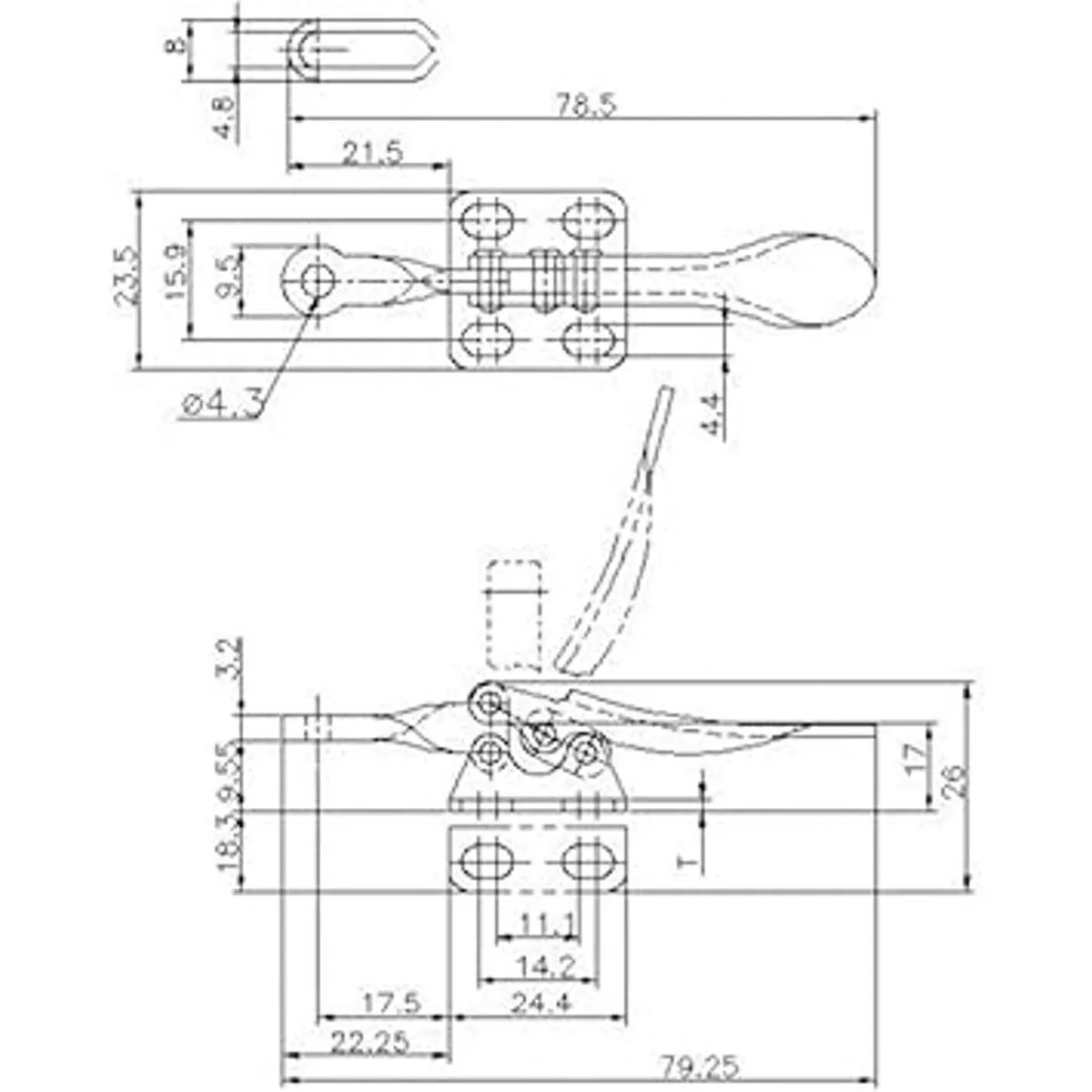 Tamaño de la abrazadera: 7,5 x 2,5 x 1,7 cm/3 x 1 x 0.7 L W H; Diámetro del agujero: 0,6 x 0,4 cm/0.23 x 0.15 L W; Brazo se abre 90 mientras que el mango se mueve 80 ; Cerrar longitud 3.11/79 mm