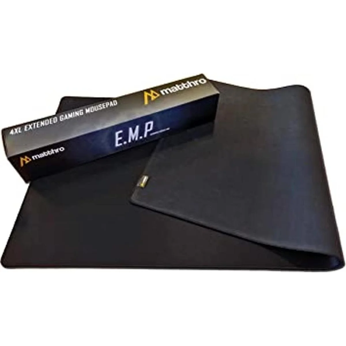 Matthro Alfombrilla de mouse para juegos de escritorio completo EMP 4XL 54 x 24 x 0.16 pulgadas, enorme alfombrilla de mouse gigante de gran tamaño, tela suave negra extendida con bordes cosidos