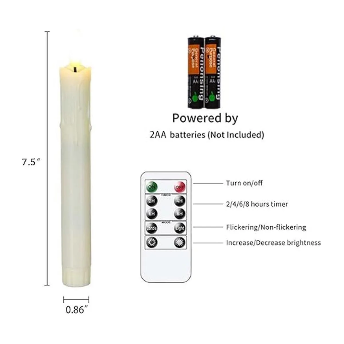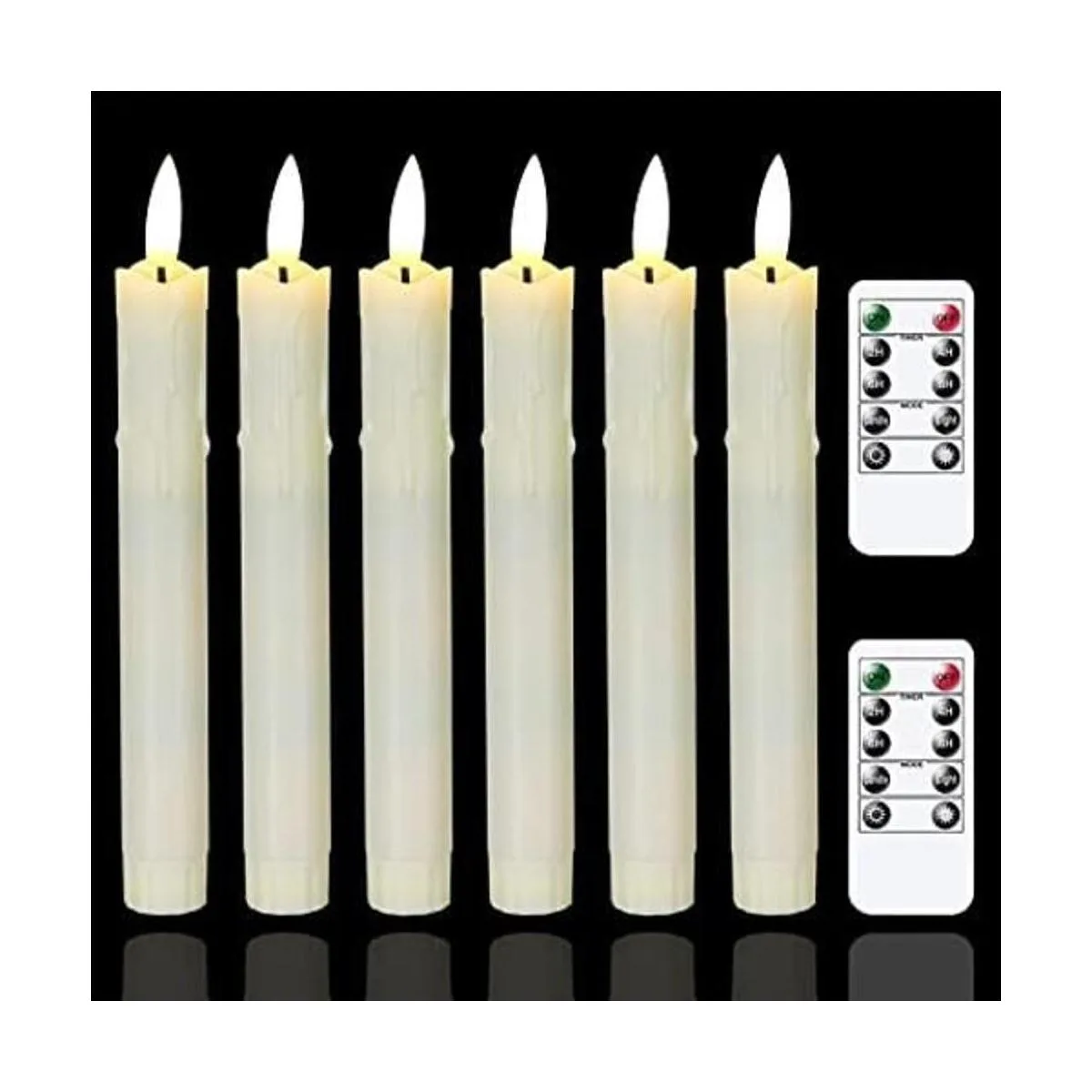Mavandes Velas cónicas parpadeantes sin llama con dos controles remotos, 7.5 pulgadas, color marfil con pilas, juego de 6 velas de plástico 3D con efecto de cera de goteo 0.86 pulgadas de diámetro, fuego caliente