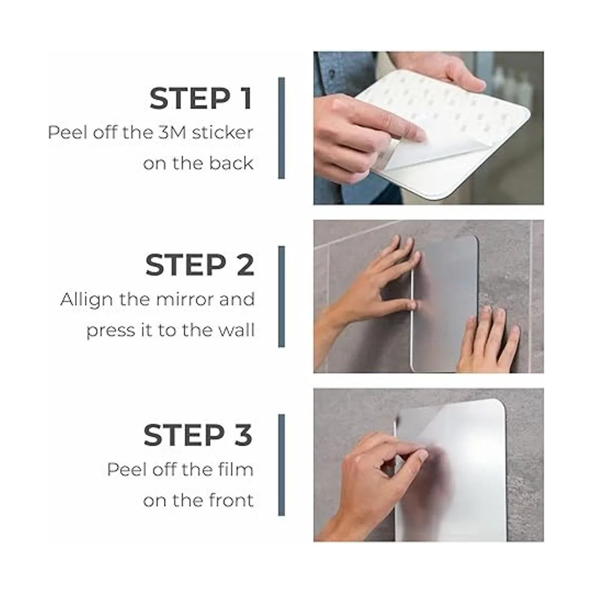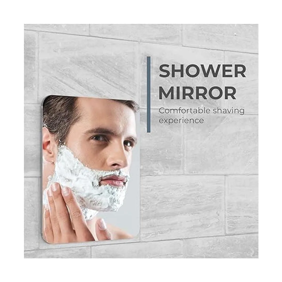 Mavoro Espejo de ducha antivaho, espejo de afeitado de baño, adhesivo fuerte 3M en la parte posterior, fácil de fijar a la superficie, inastillable, diseño minimalista, fácil de limpiar tamaño grande, 7 x 9 pulgadas