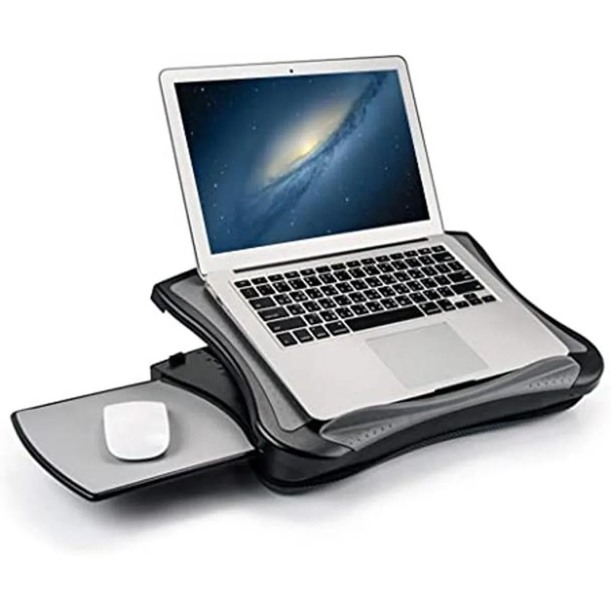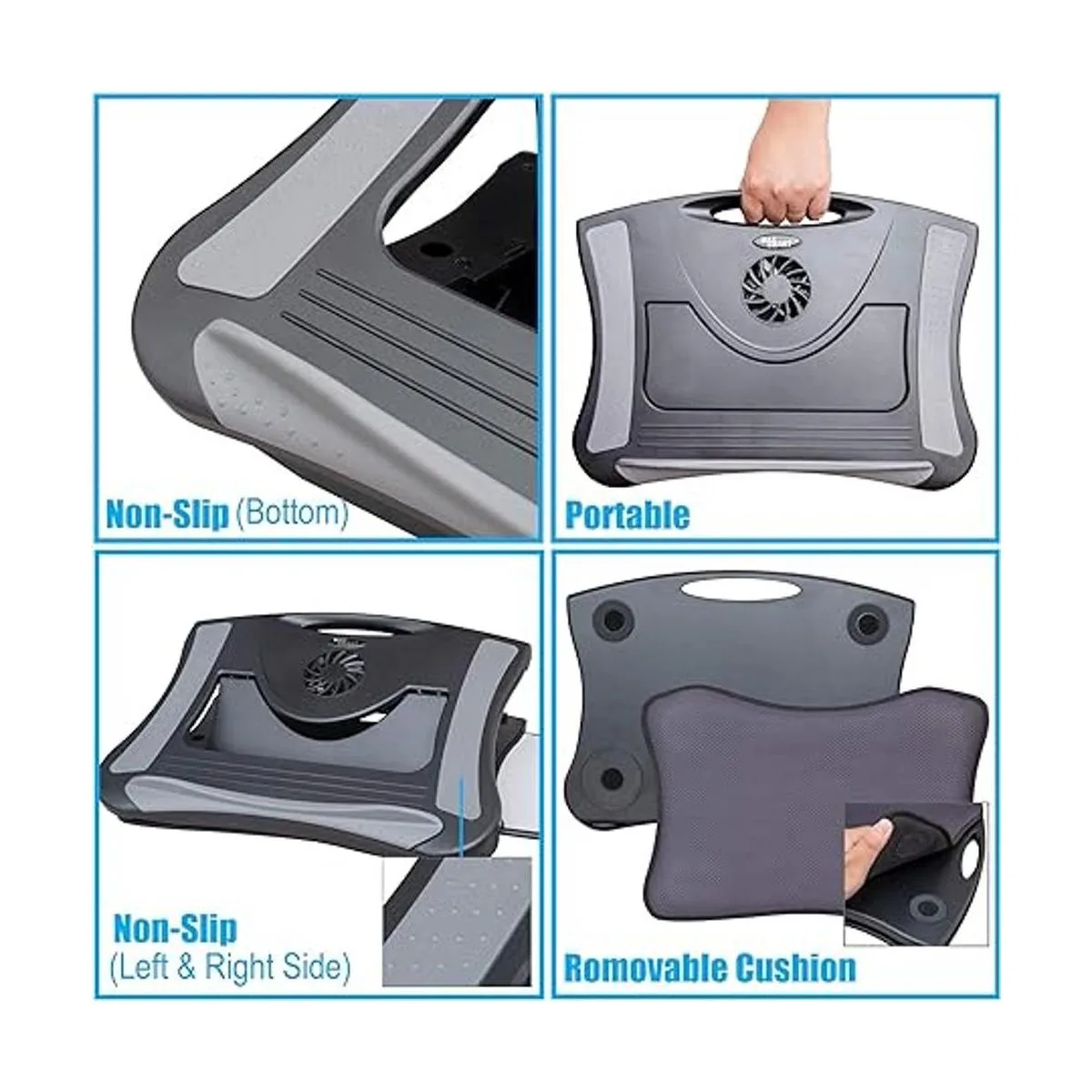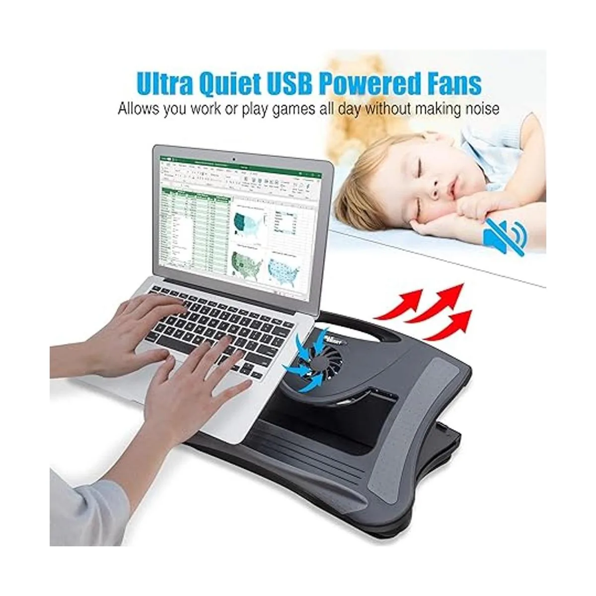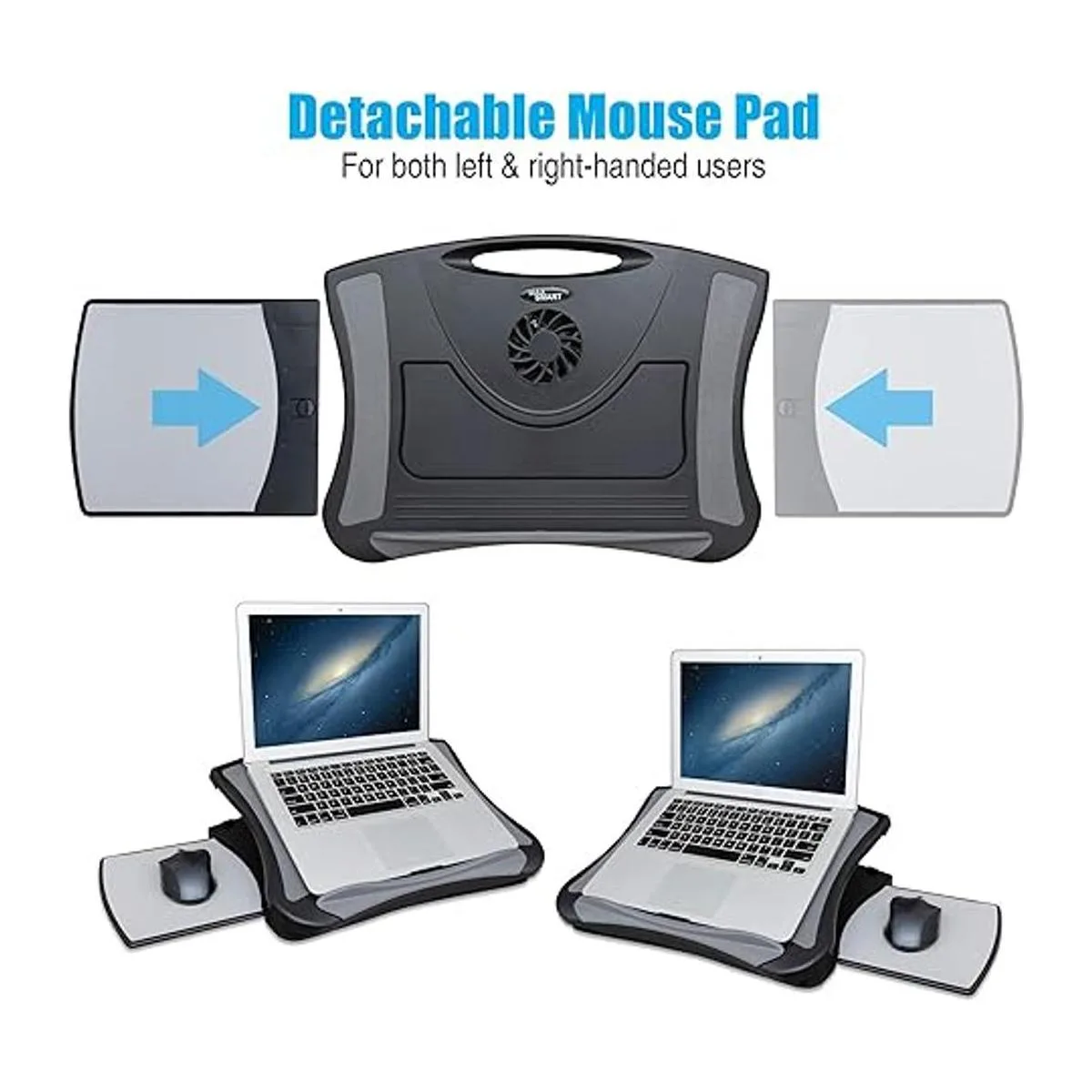 MAX SMART Soporte para laptop con alfombrilla para mouse adjunta, cojín y ventilador de refrigeración USB, soporte antideslizante con escudo térmico para estación de trabajo resistente para el hogar, oficina, sofá, sofá y coche