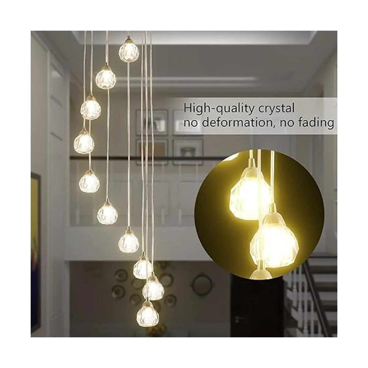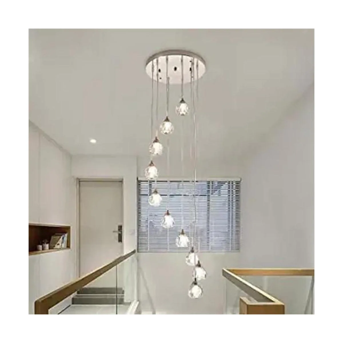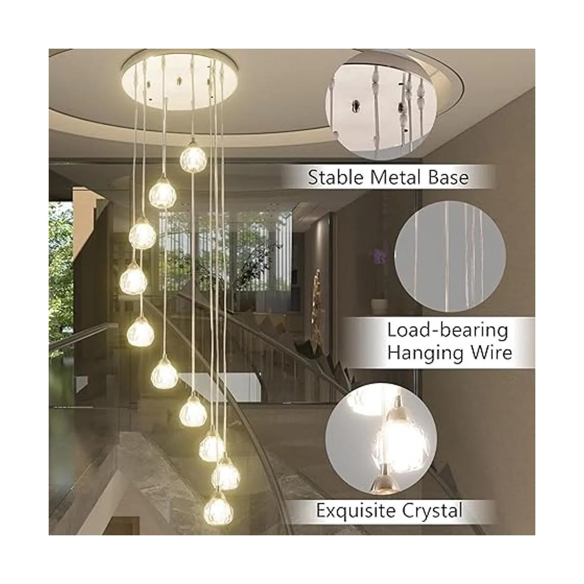 Maxax Lámpara de techo de cristal de 10 luces, lámpara colgante grande moderna de lluvia de montaje empotrado, lámparas de techo con suspensión en espiral de bola de villa de 67 pulgadas, para escalera, vestíbulo, pasillo, entrada, níquel