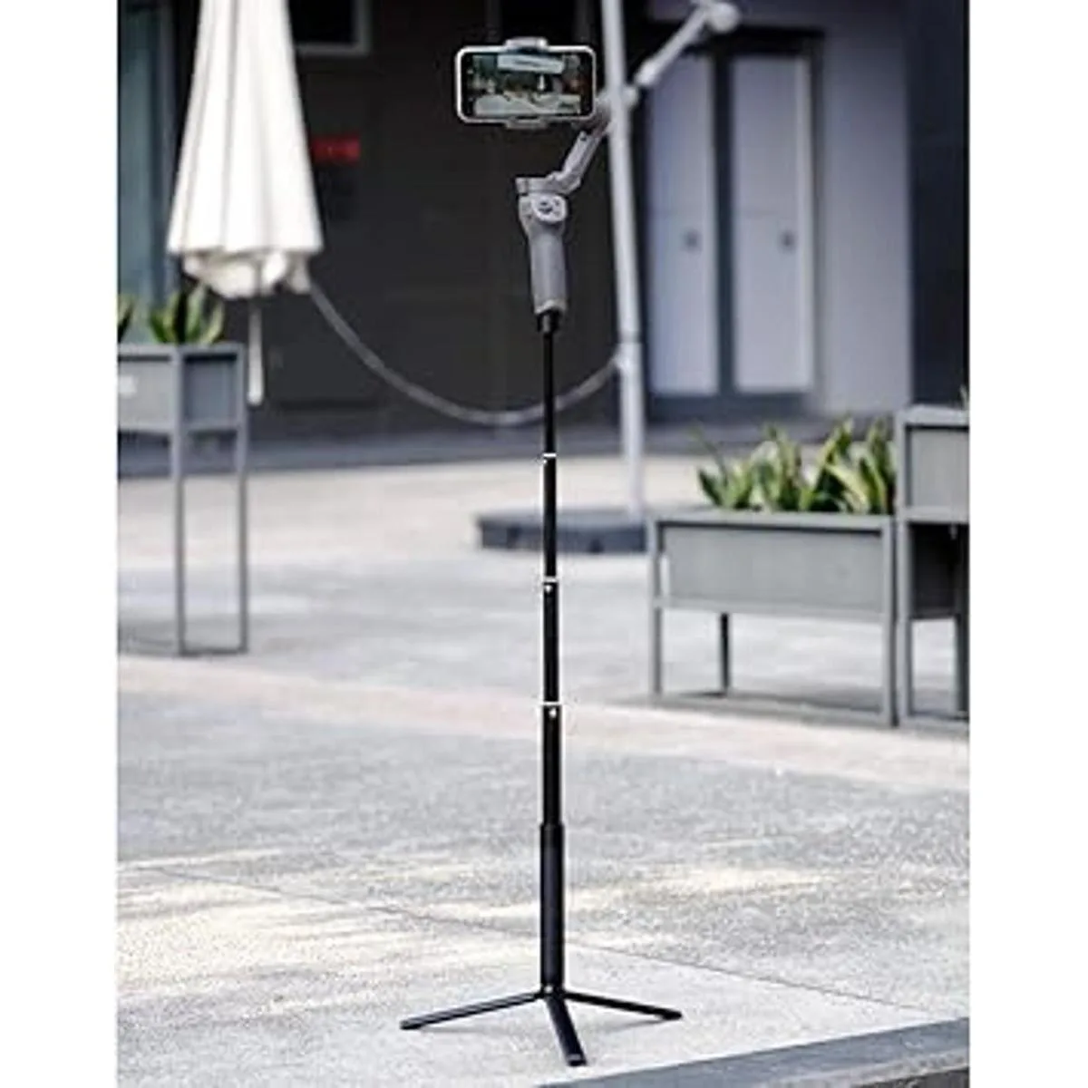 Es muy estable y no se agita al disparar. El trípode está extendido. El trípode y la barra de extensión están hechos de aleación de aluminio. Nota: la barra de extensión de trípode de funda, Osmo Mobile y teléfono móvil no están incluidos.