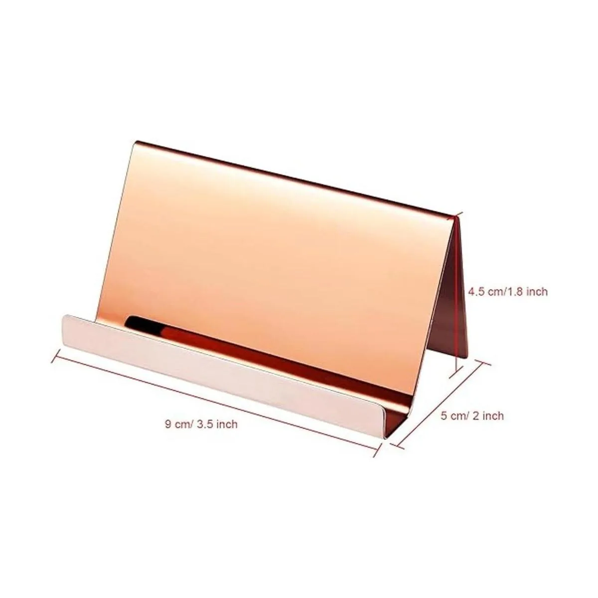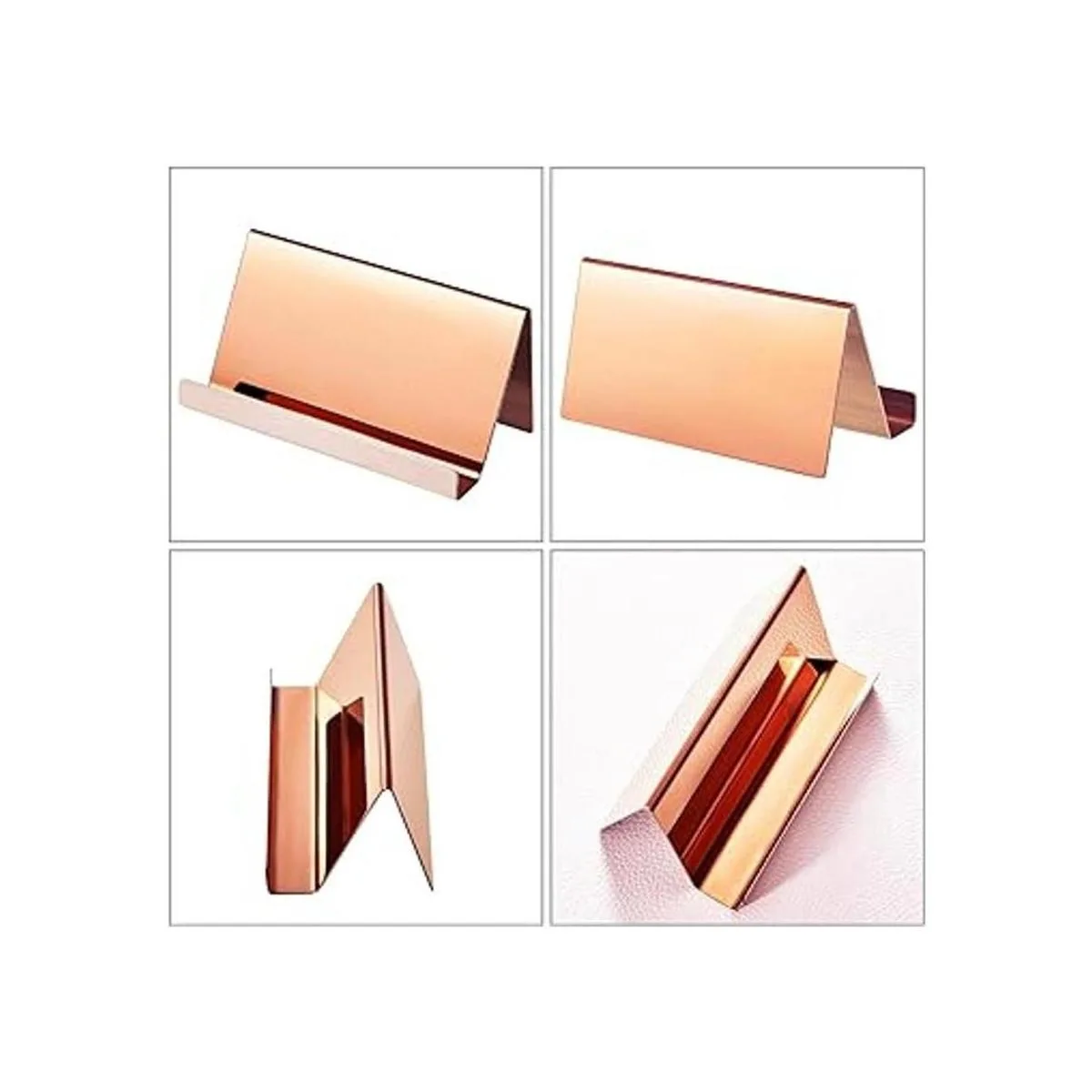 Maxdot Portatarjetas de visita de acero inoxidable, organizador de escritorio, color oro rosa 1