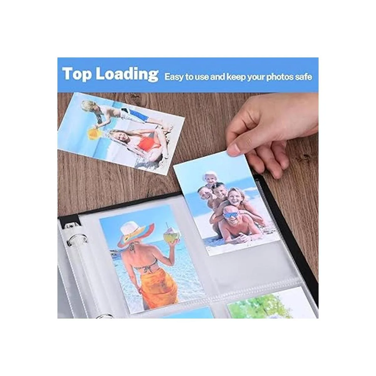 Se adapta a carpetas estándar de 3 anillos: almacena tus fotos de 3 x 5 pulgadas, 4 bolsillos por página, las páginas de fotos son compatibles con carpetas de 3 anillos de 8.5 x 11 pulgadas. Puedes insertar fácilmente fotos y notas en las fundas de fotos.